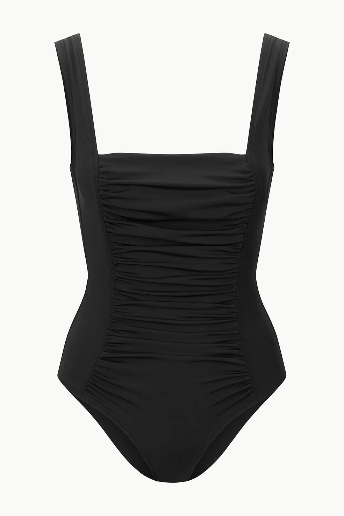 The Alder is a one piece swimsuit with soft gathers down the center front and a low scoop back.