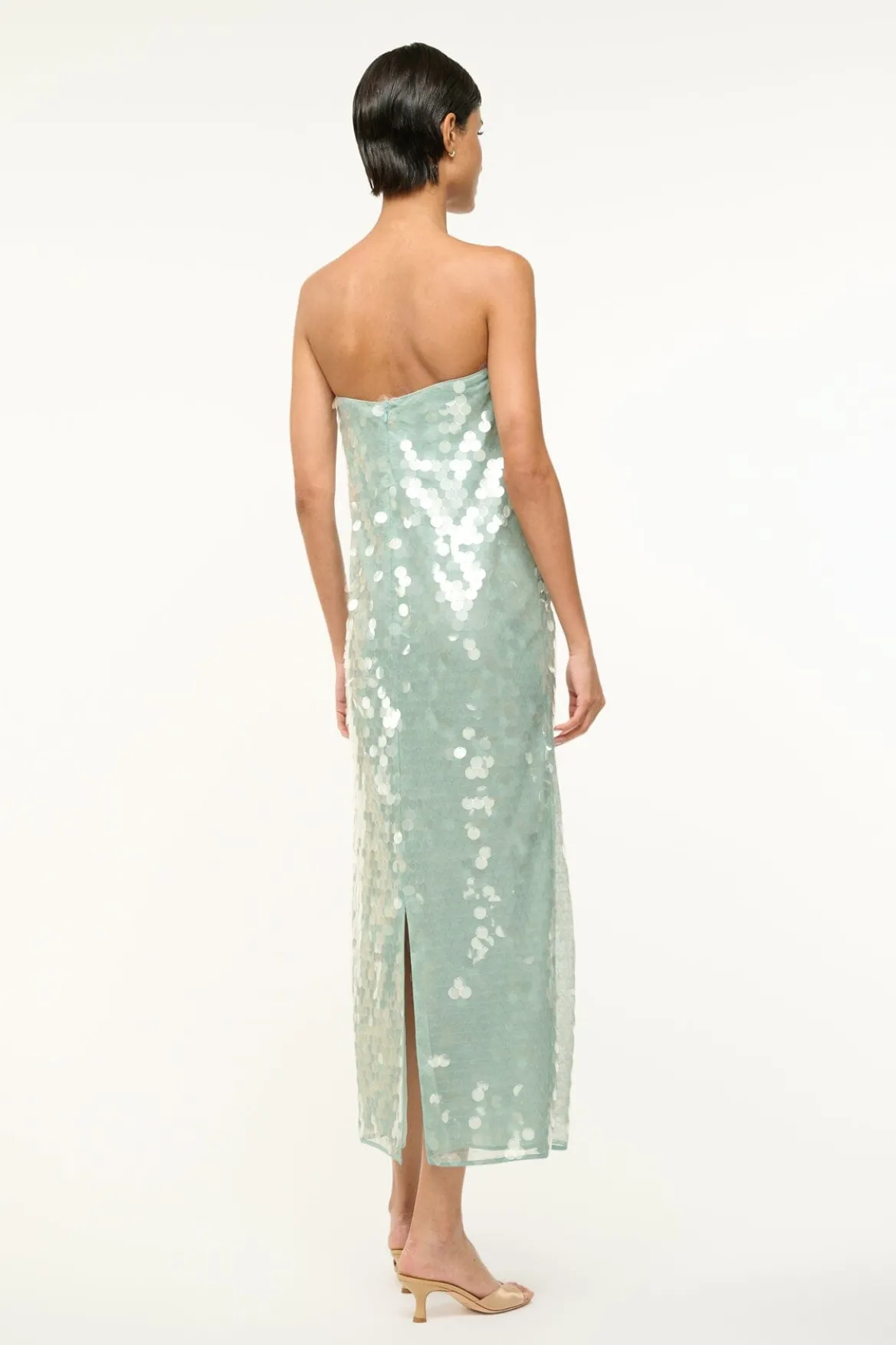 Our best-selling Casey Dress crafted in shiny sequins features a relaxed silhouette throughout the body, a back slit, and a hidden zipper.