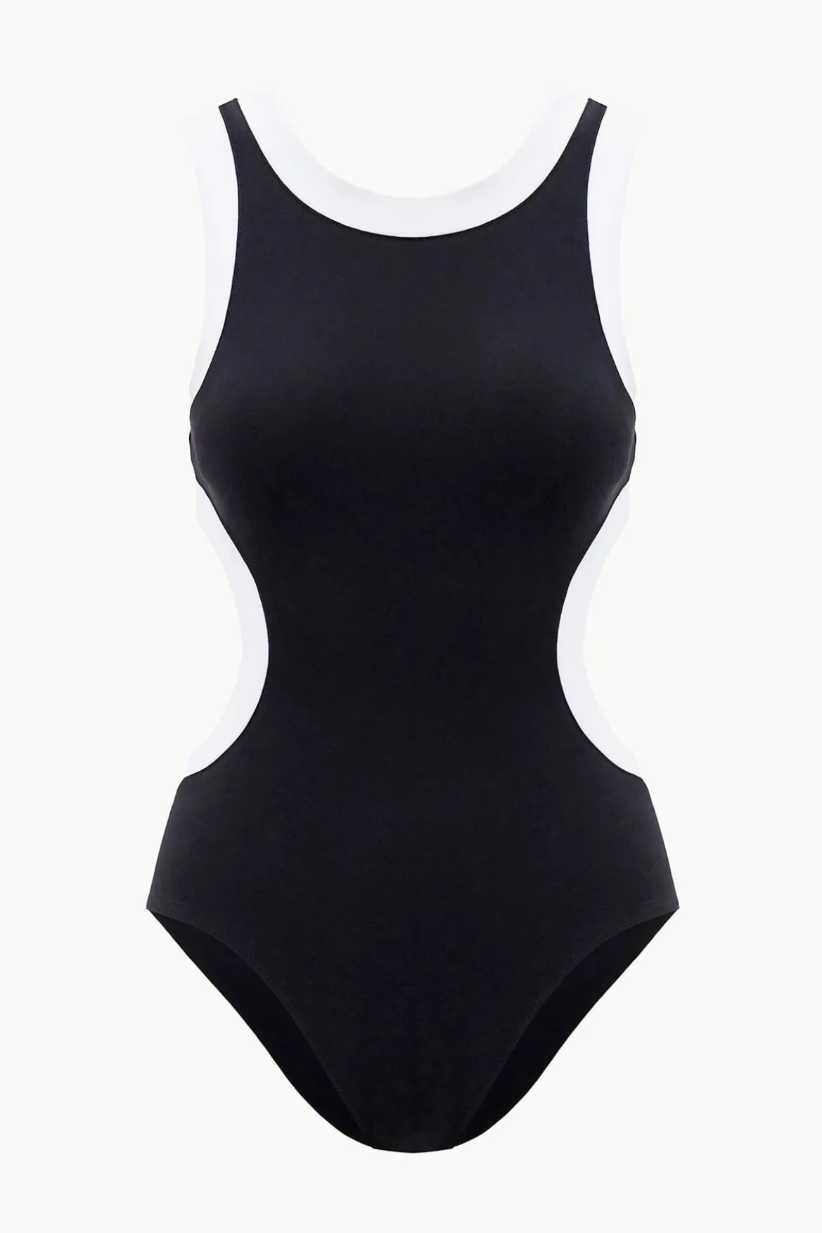 Fashioned after our signature dress, the Dolce One Piece features flattering side cutouts, moderate back coverage, and a low back with clasp closure.