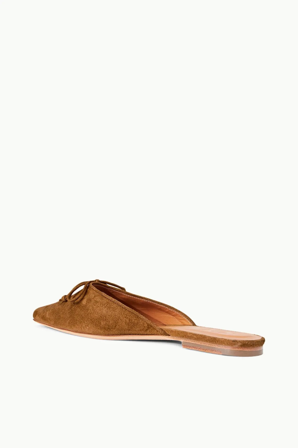 A flat suede mule, the Gina features a sleek pointed toe and bow detail.