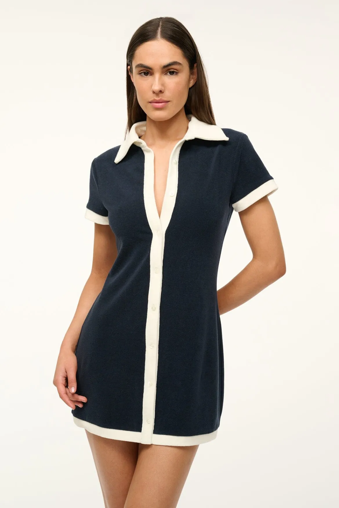 The Holtz Cover-Up Dress is a terry cloth dress to pair with your favorite Staud Sea swimwear. This style is a mini-length dress, with a button front opening, so you can wear it open or closed.