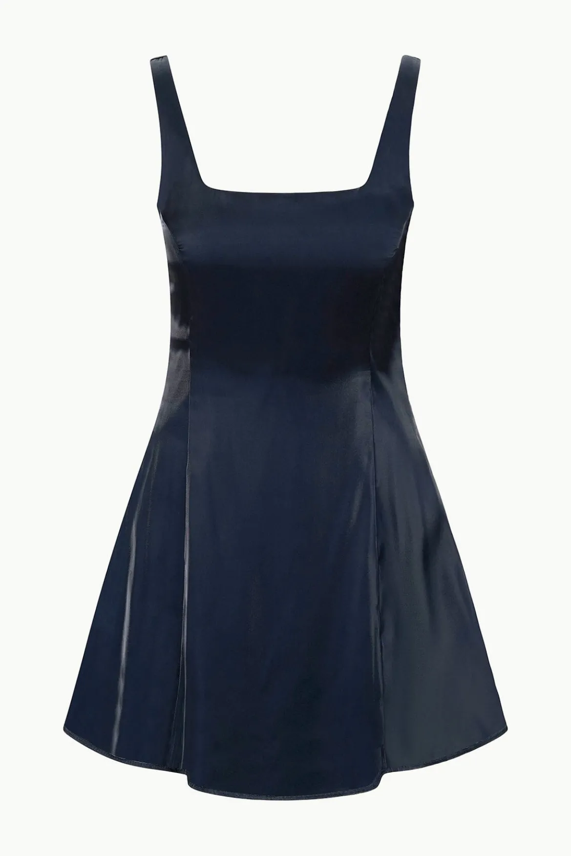 The Mini Livingston is crafted from a sheer iridescent organza and is fully lined for ease. It features a square neckline, wide straps and a full skirt.