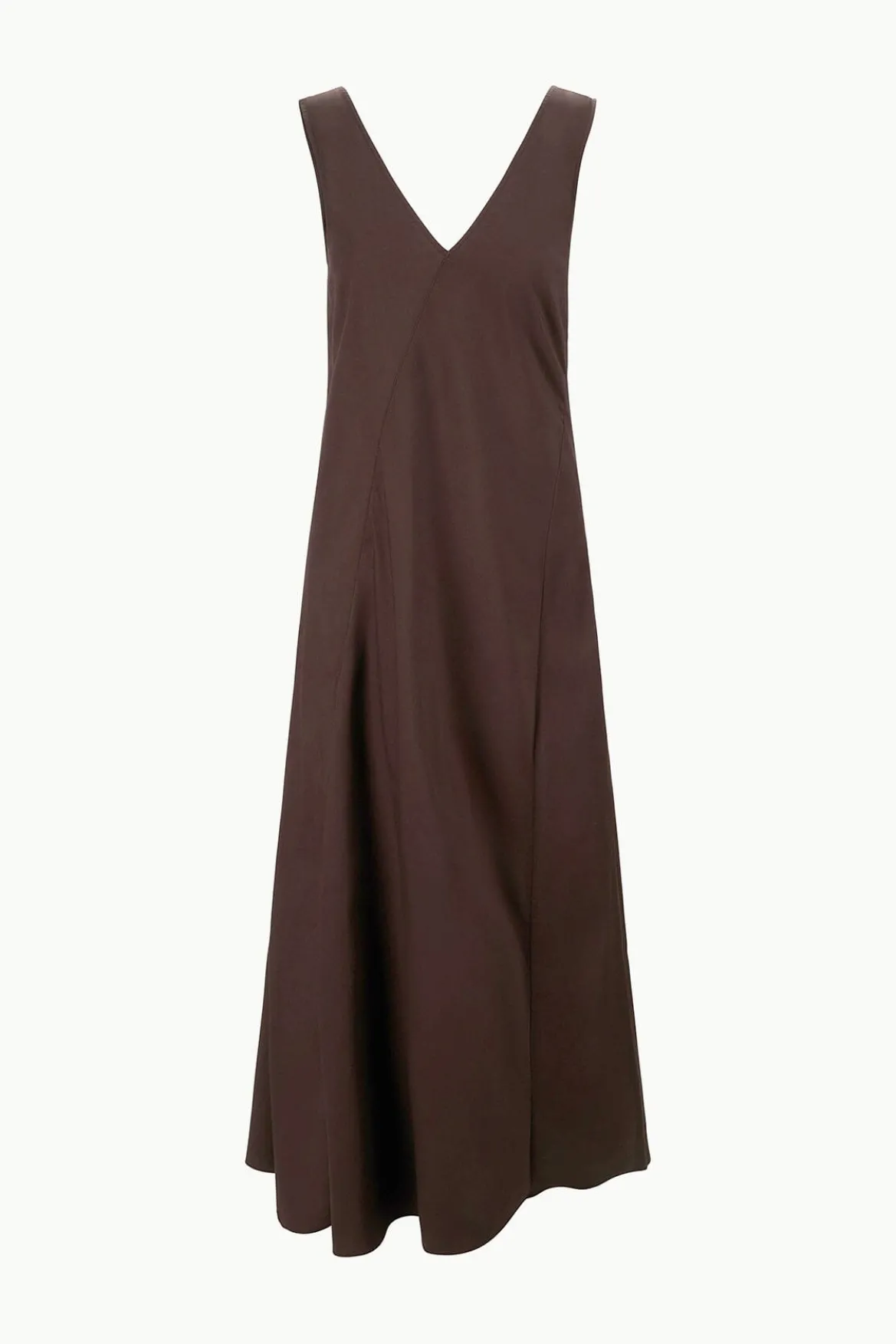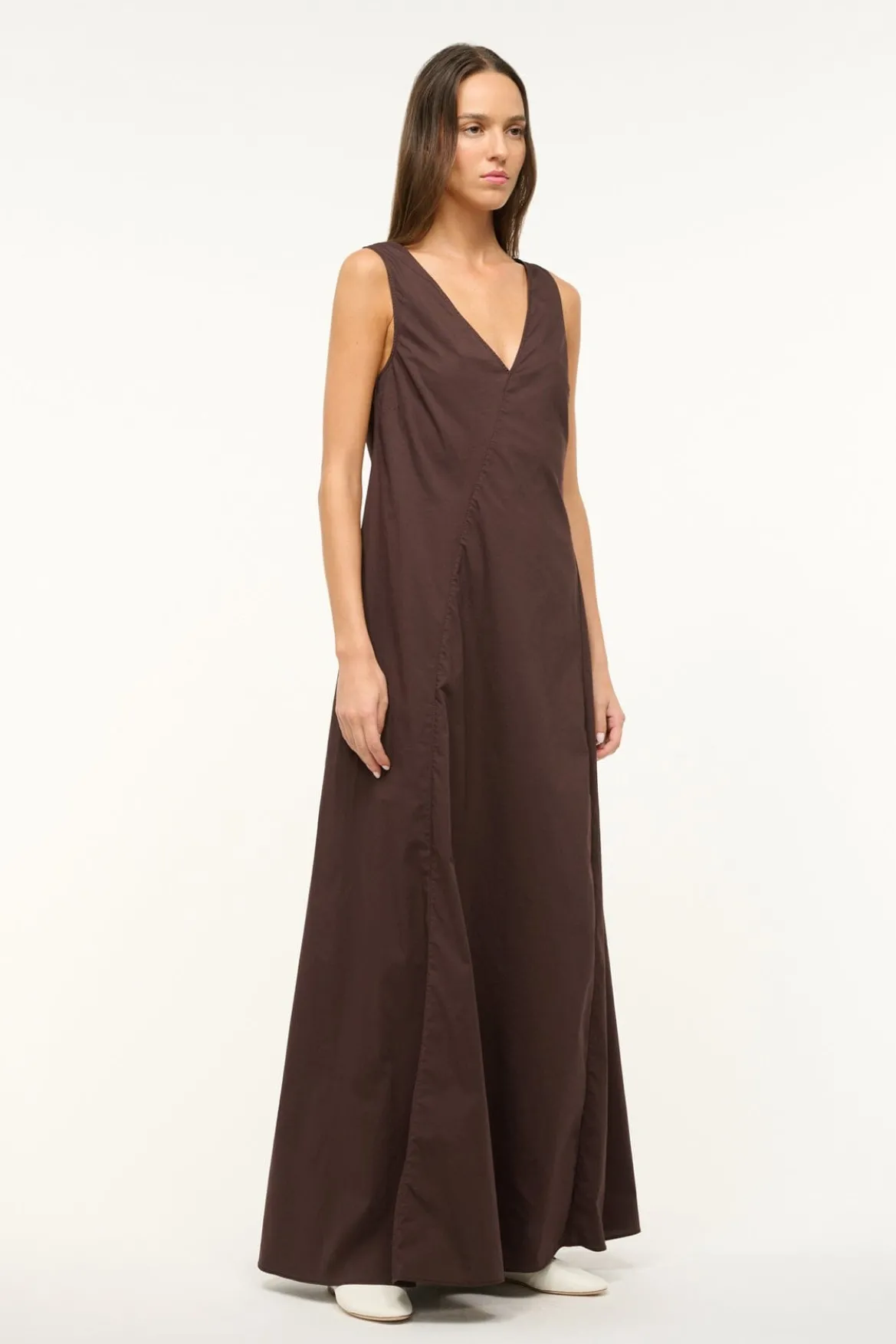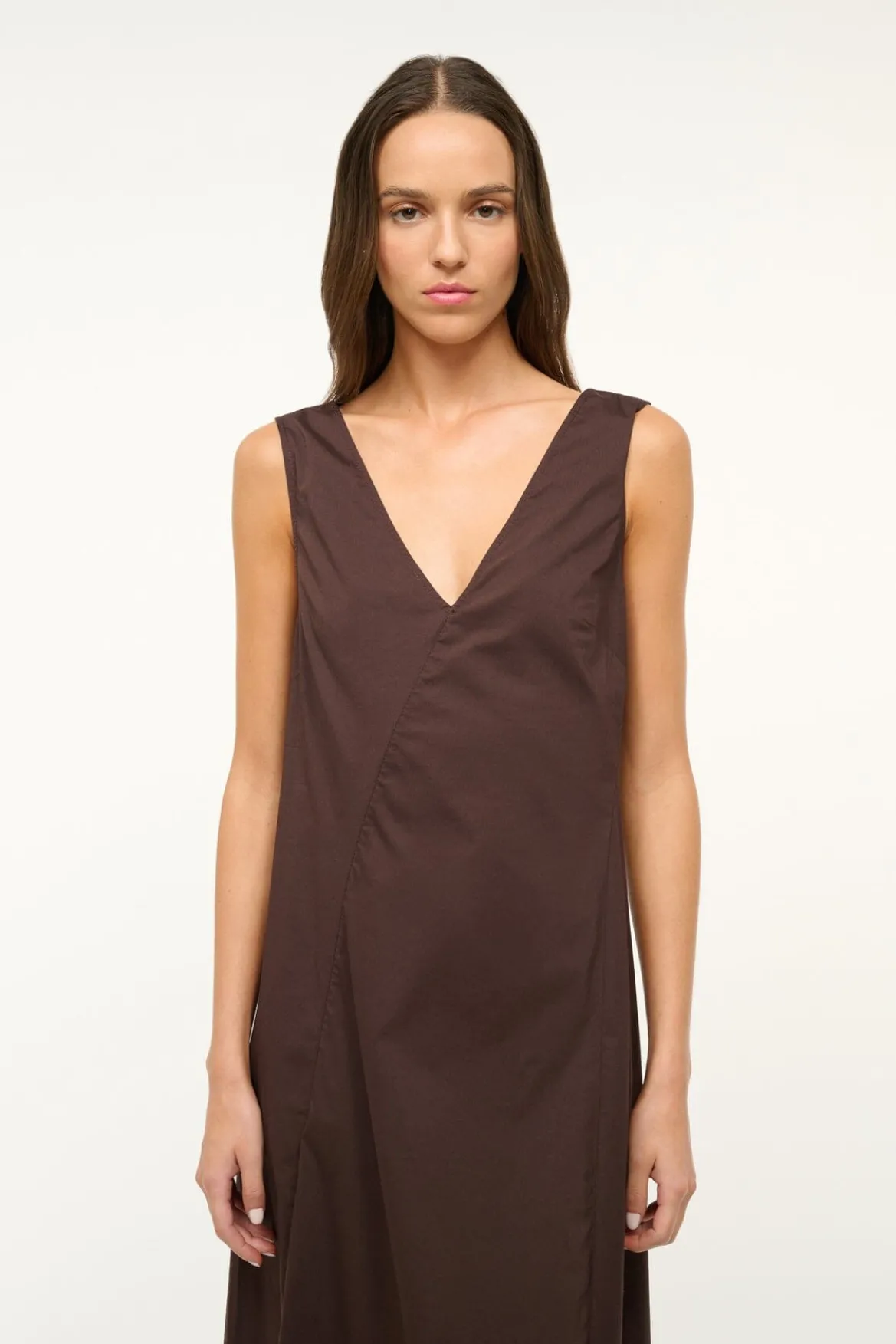 The Roma Dress is a deep-v maxi crafted from a crisp cotton poplin. This minimalistic design offers versatility and can be easily dressed up or down.