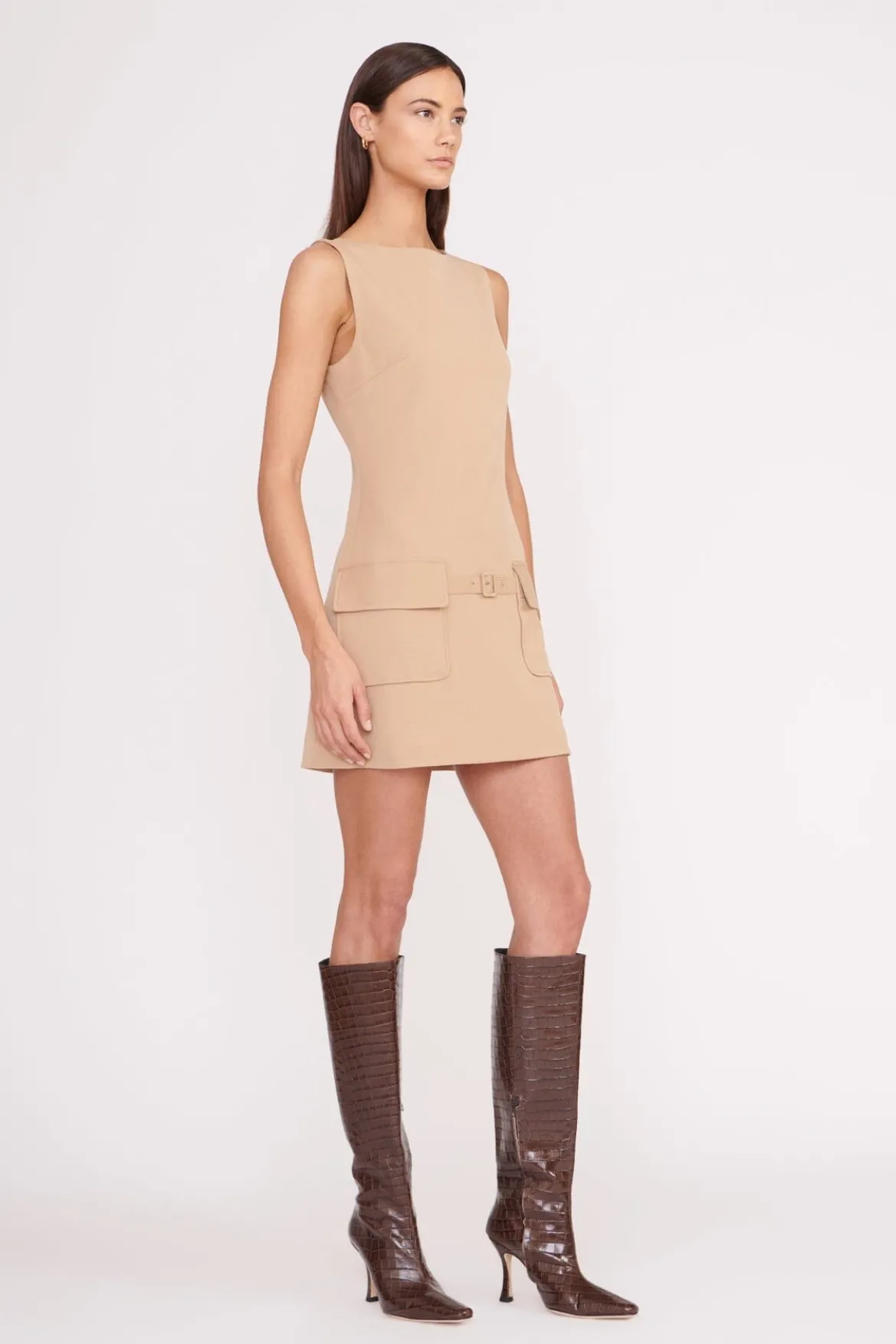 The Sheila Dress offers a classic, versatile silhouette to take you from day to night. This style features a boat neck, two front flap pockets and belt detail.