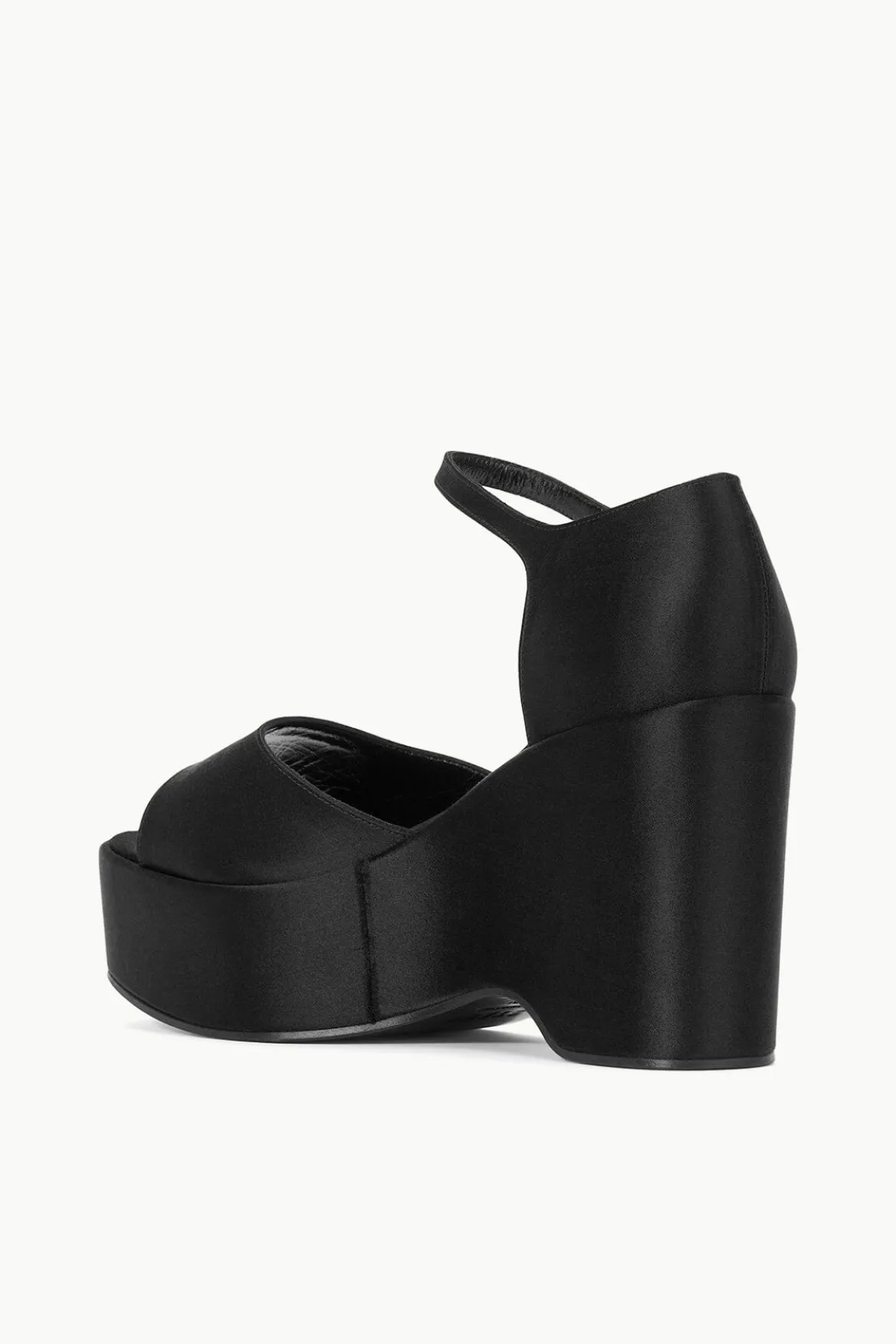 A 90’s-inspired satin platform, the Stella features an open toe and ankle strap perfect for both long flared pants and dresses alike.
