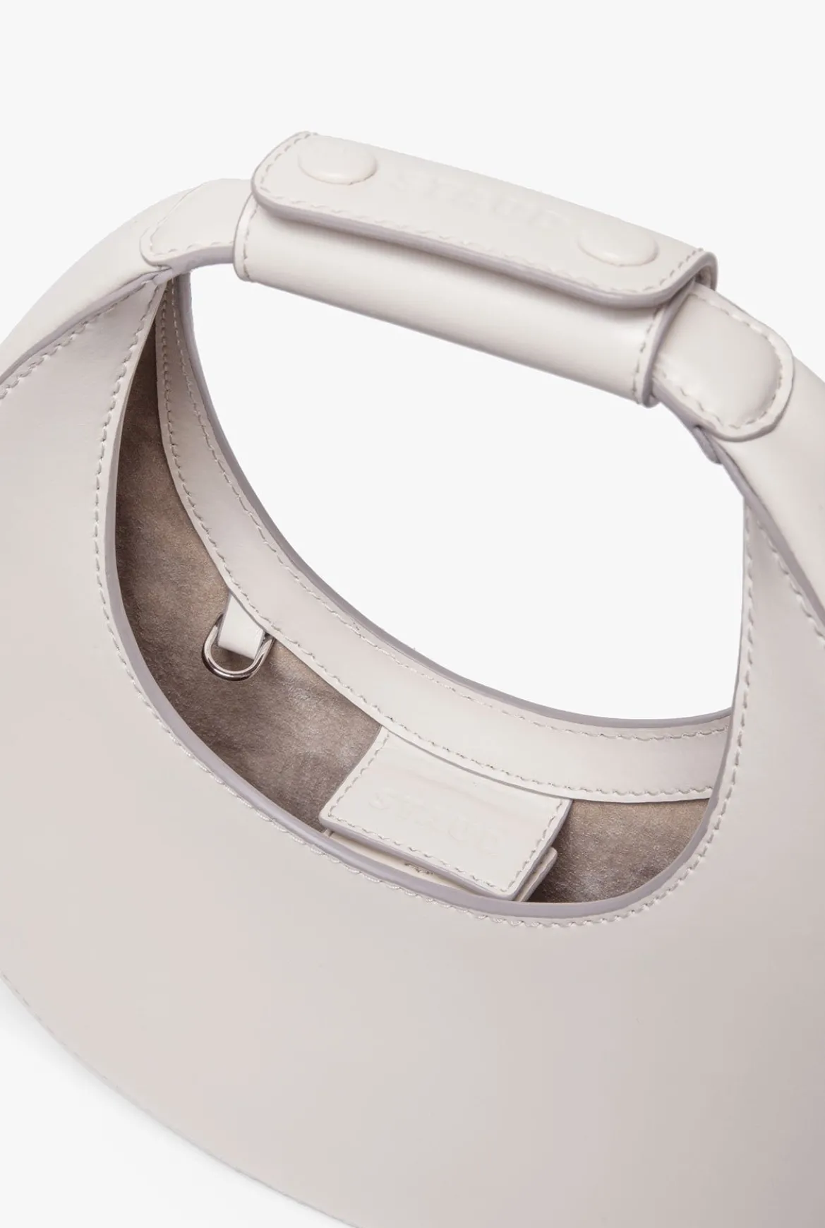 The Mini Moon Bag is an update to our classic crescent moon shape in leather with inner suede lining and a magnetic closure to hold your essentials. This bag comes with a removablecrossbodystrap.