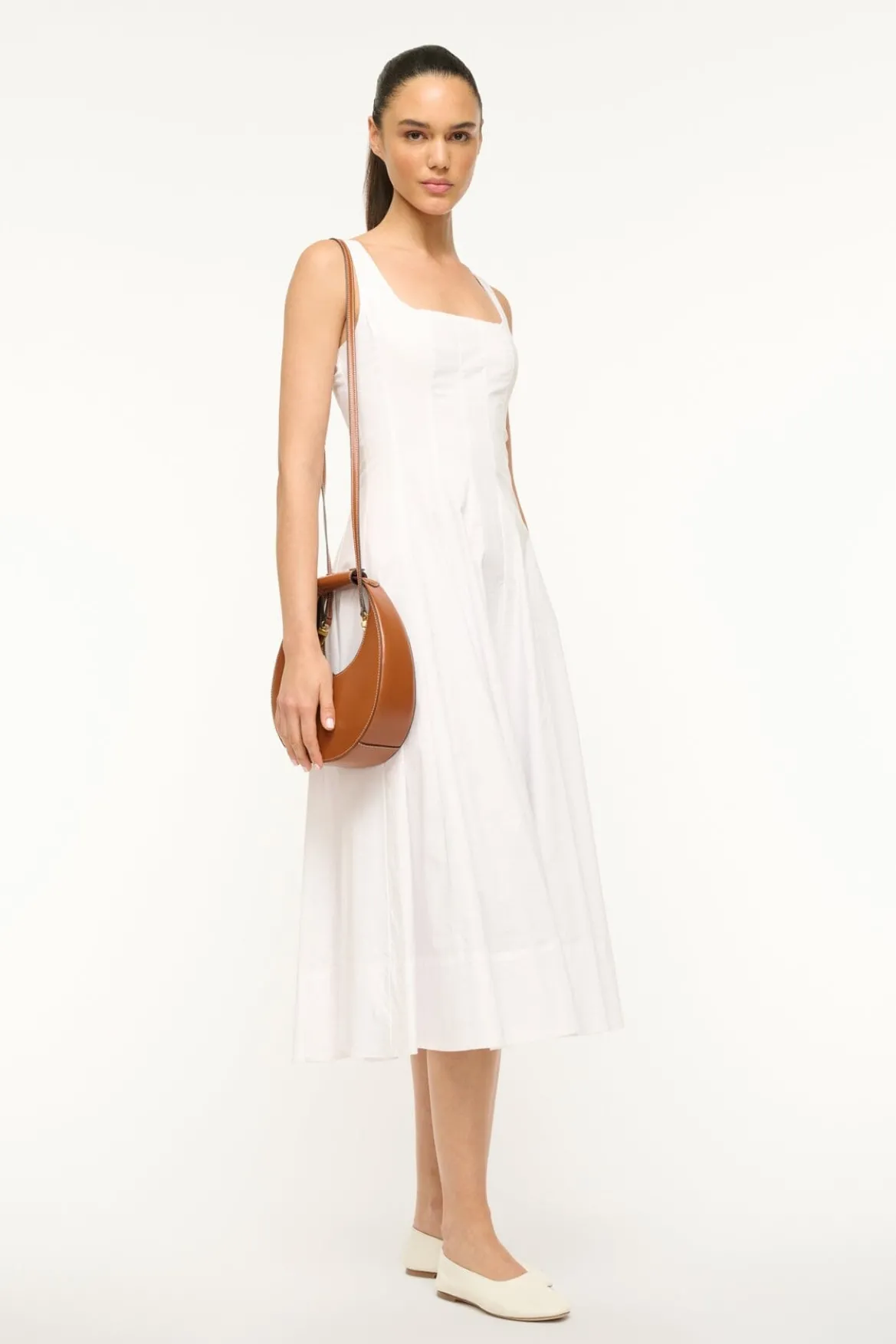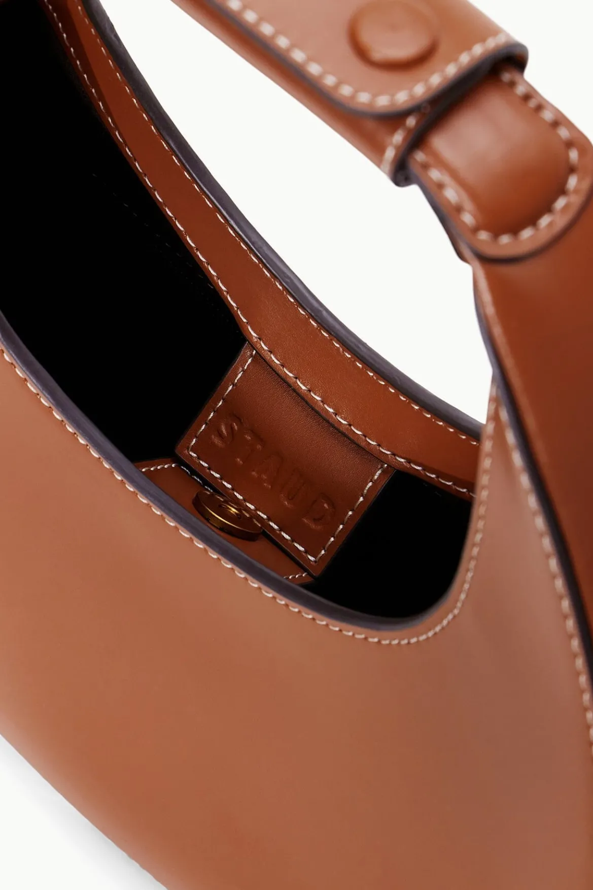 The Mini Moon Bag is an update to our classic crescent moon shape in leather with inner suede lining and a magnetic closure to hold your essentials. This bag comes with a removablecrossbodystrap.