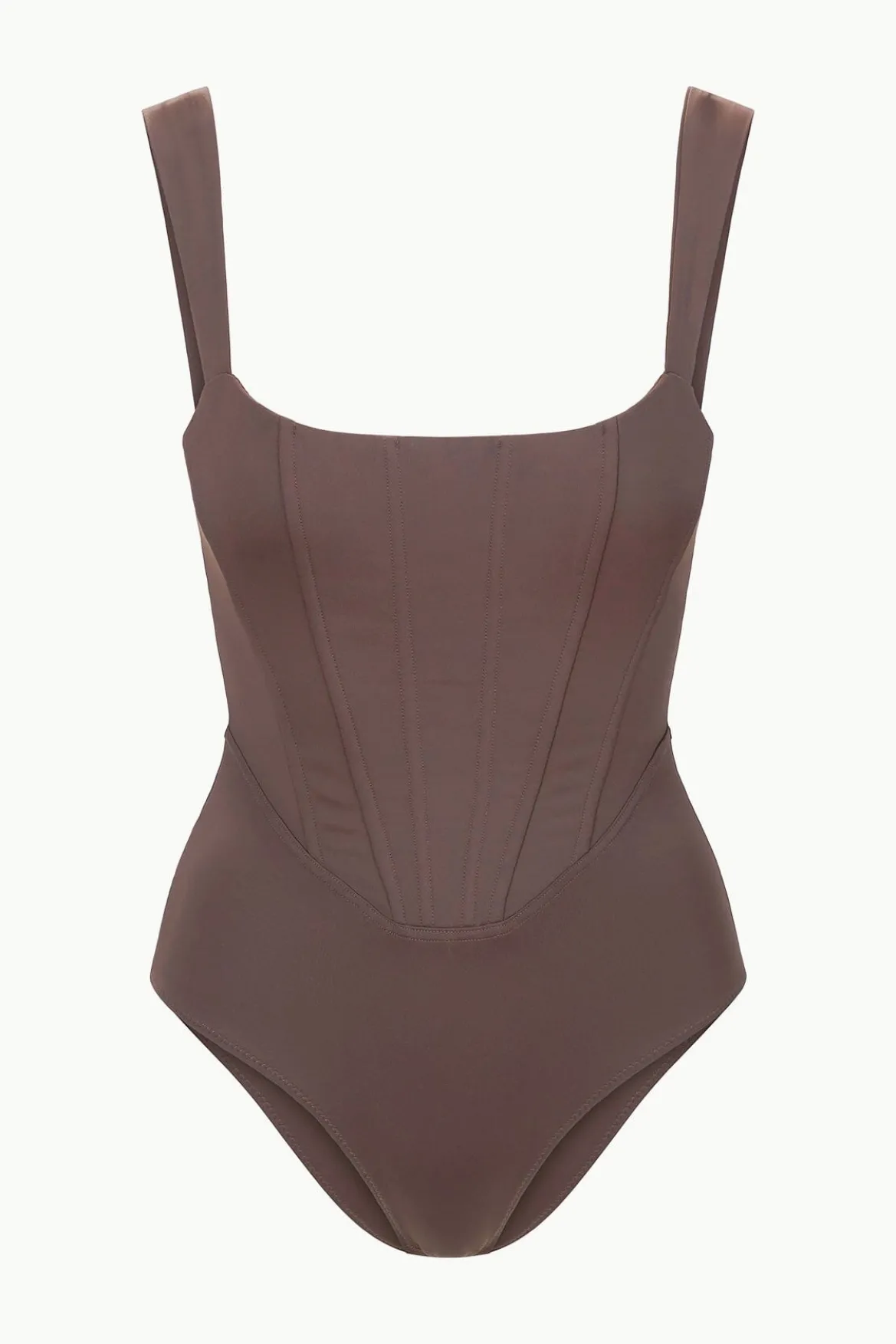 The Adelaide is a new one piece swimsuit with corset-style boning throughout the chest and torso. This style features zipper at the back and supportive shoulder straps.