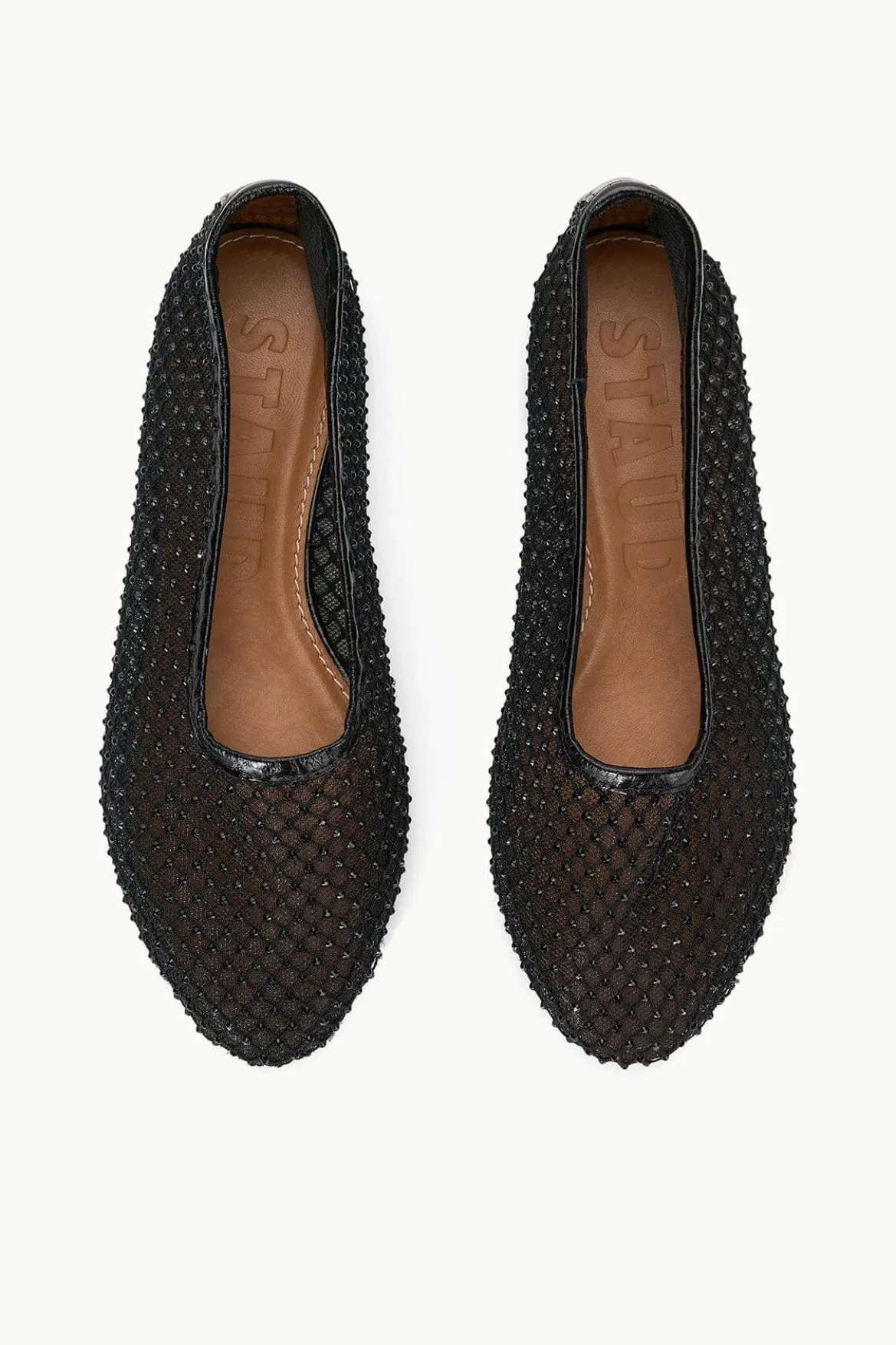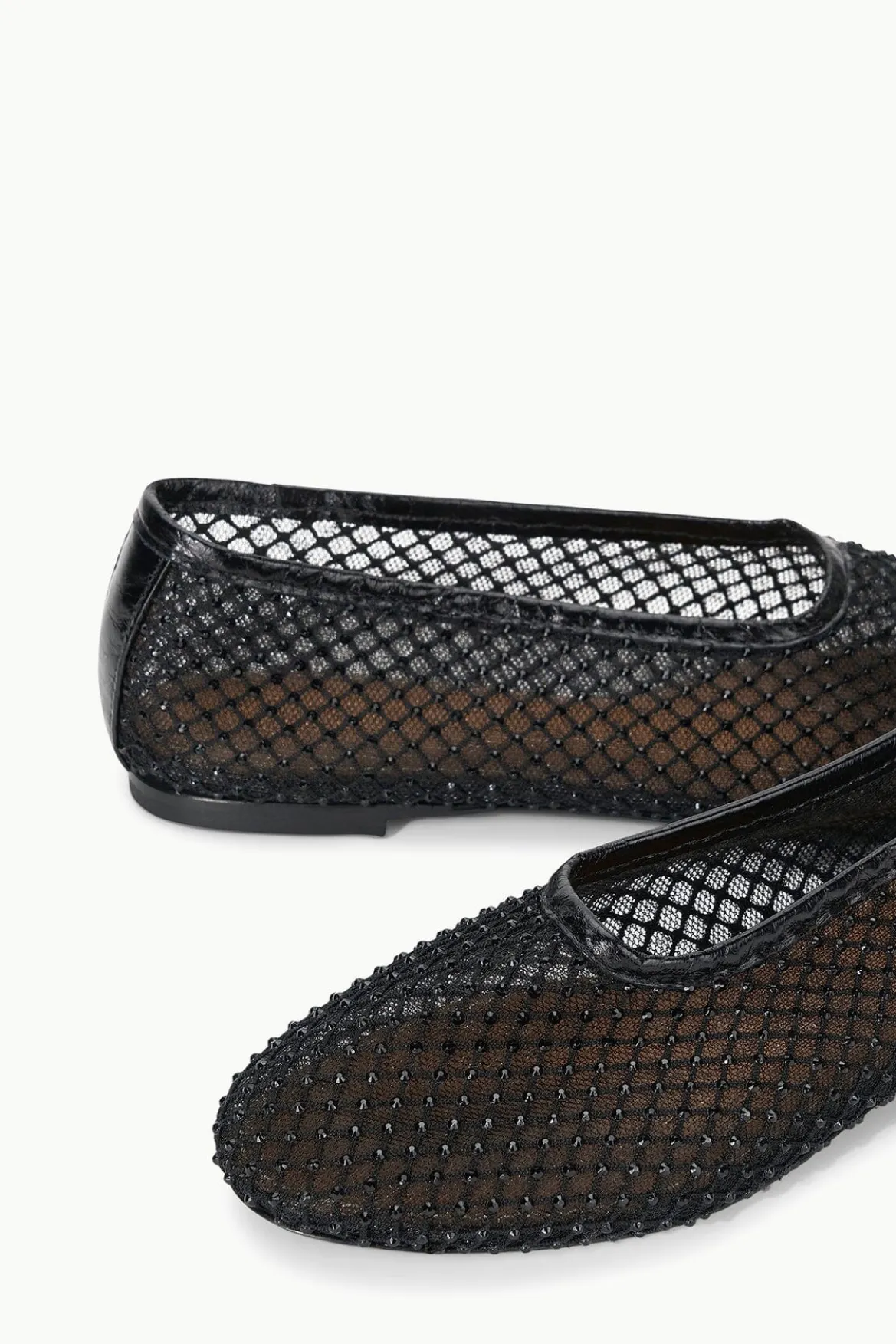 Our Alba Ballet Flat has been updated for the Holiday season in a delicate beaded mesh. They feature a rounded toe and a soft nappa leather sole.
