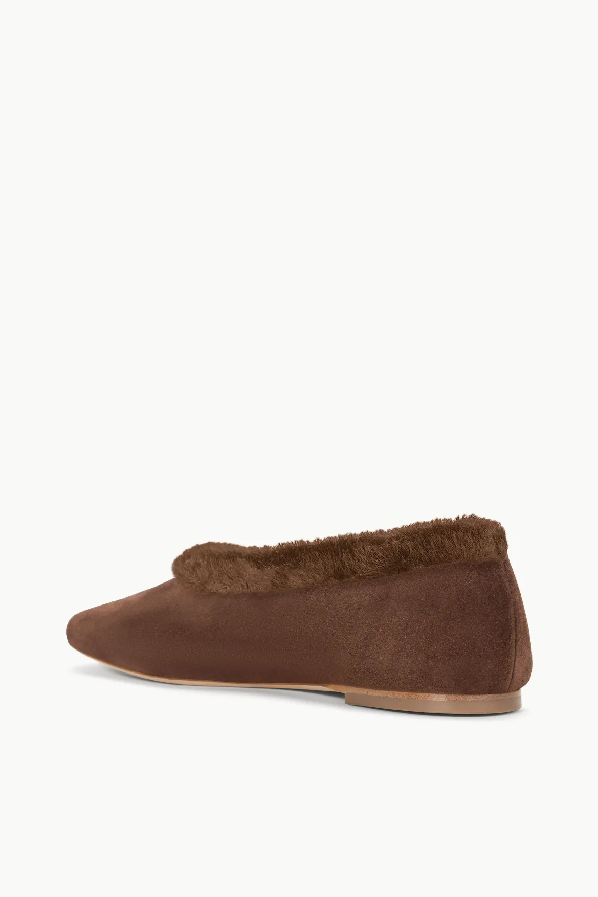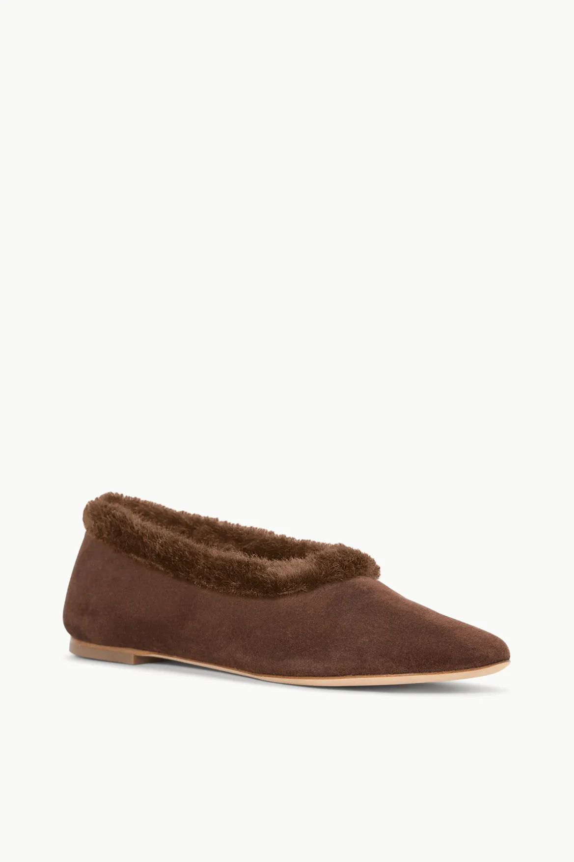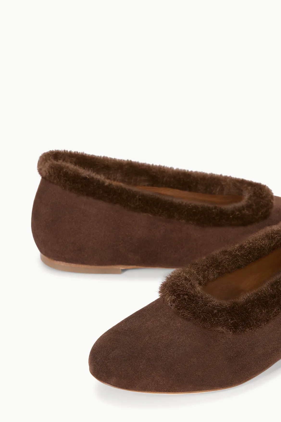Our Alba Ballet Flat has been updated for Fall with a faux fur trim. It is crafted from a supple suede made for everyday ease.