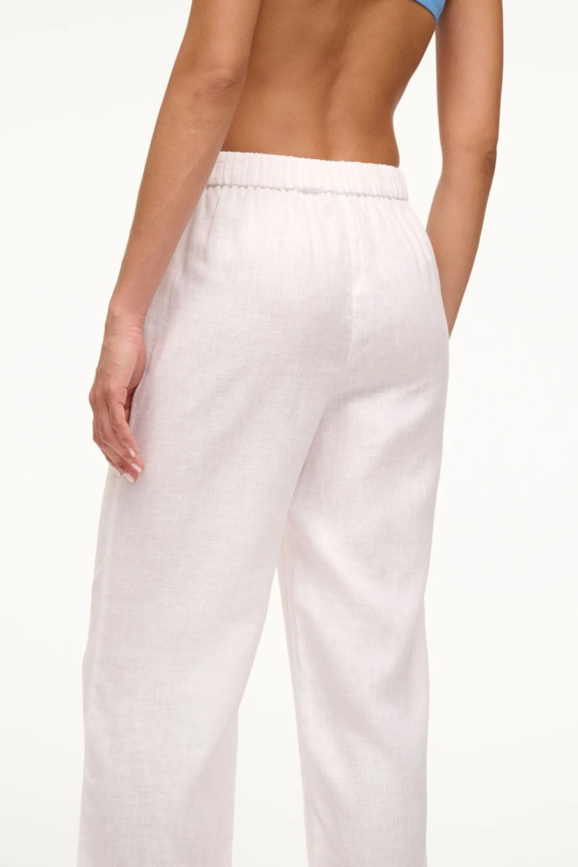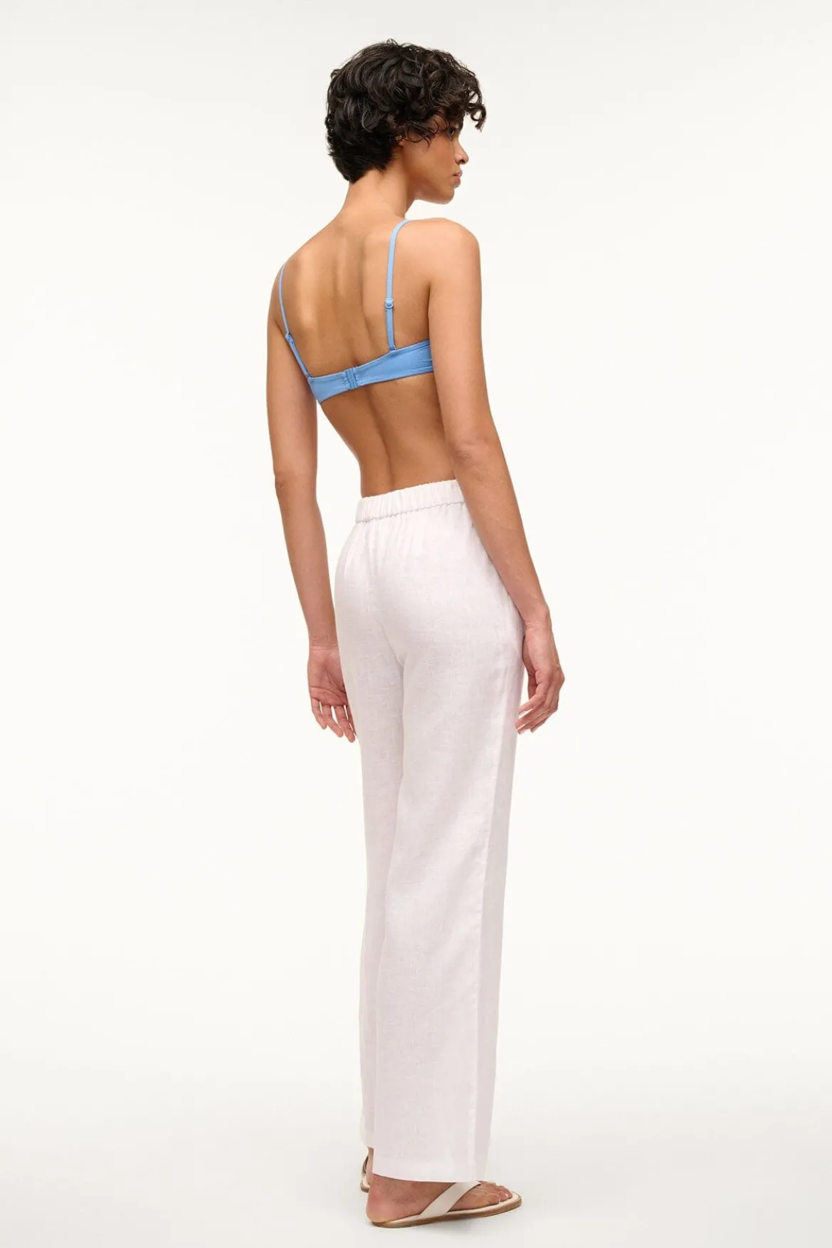 The Alize is a mid-rise, straight leg linen pant with a drawstring waistband. Wear with the Colton Shirt for a matchingswimcover-up set.