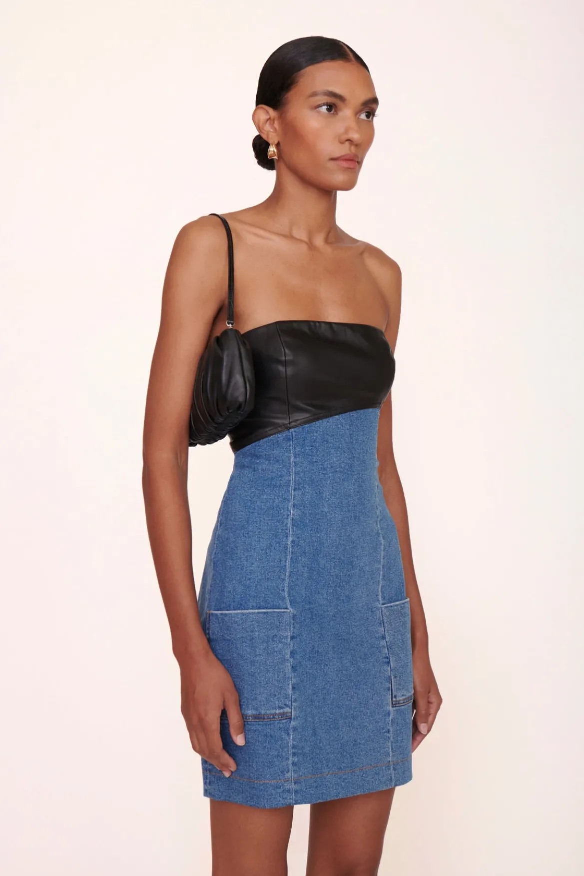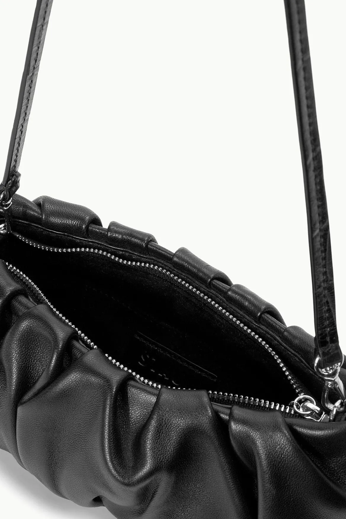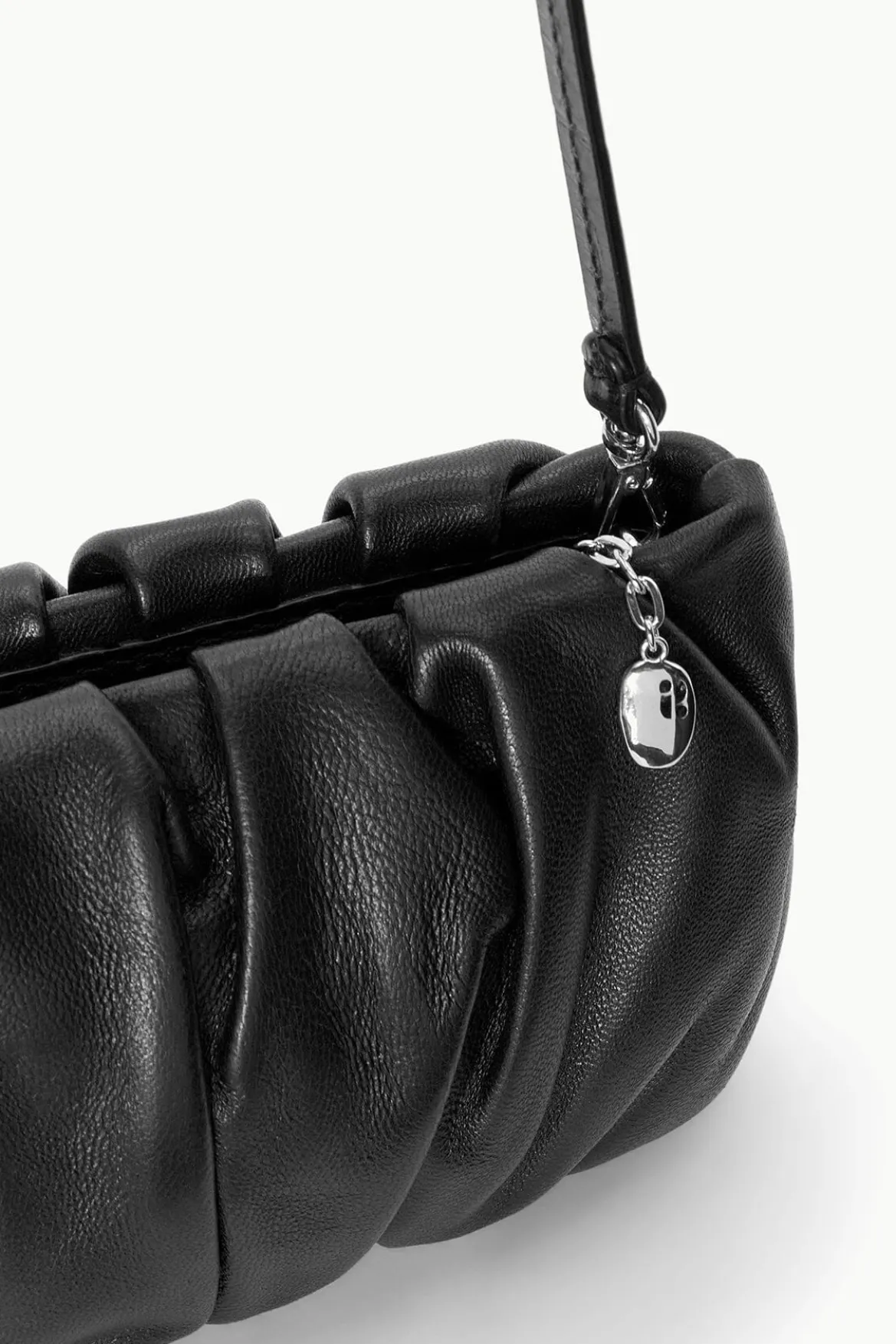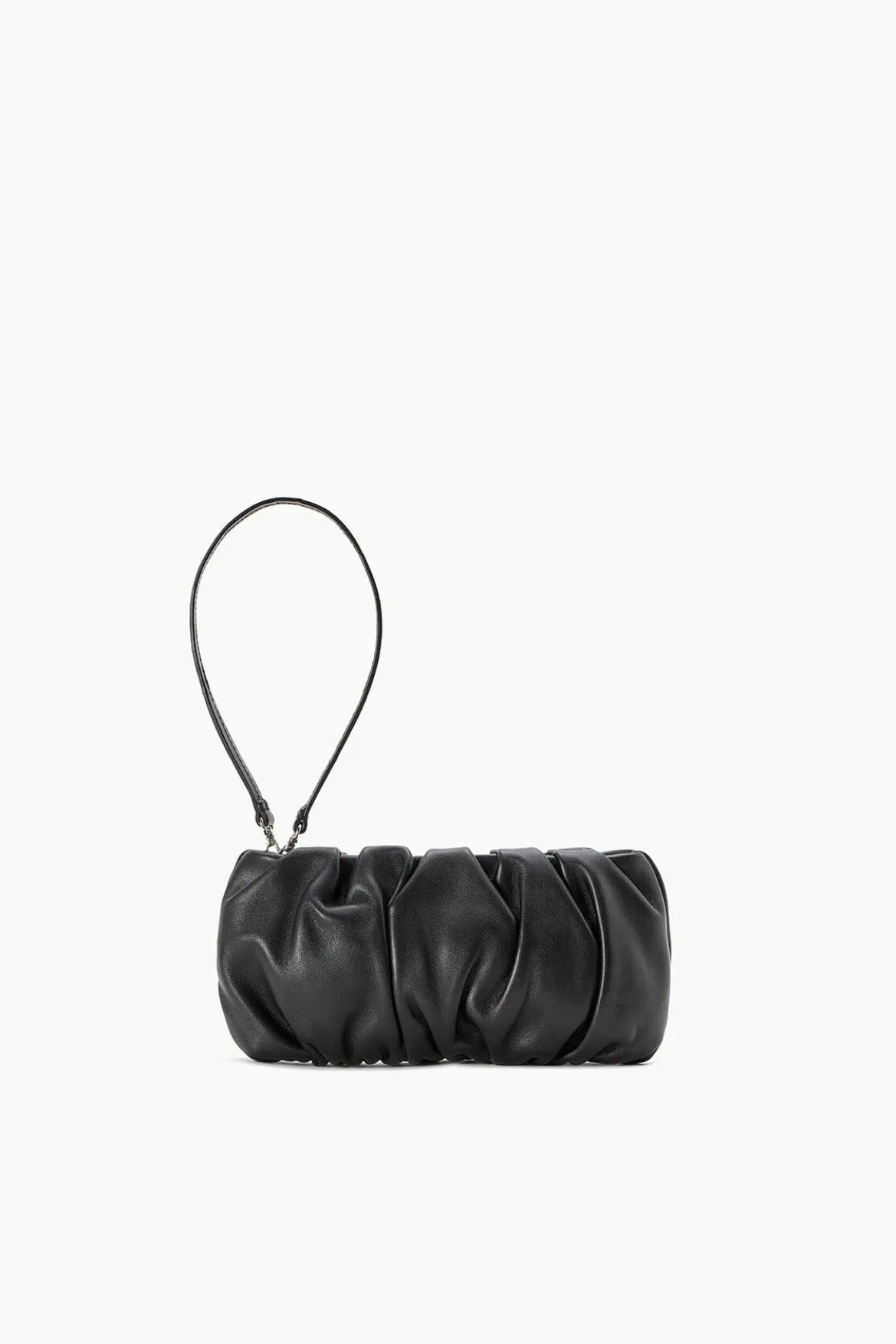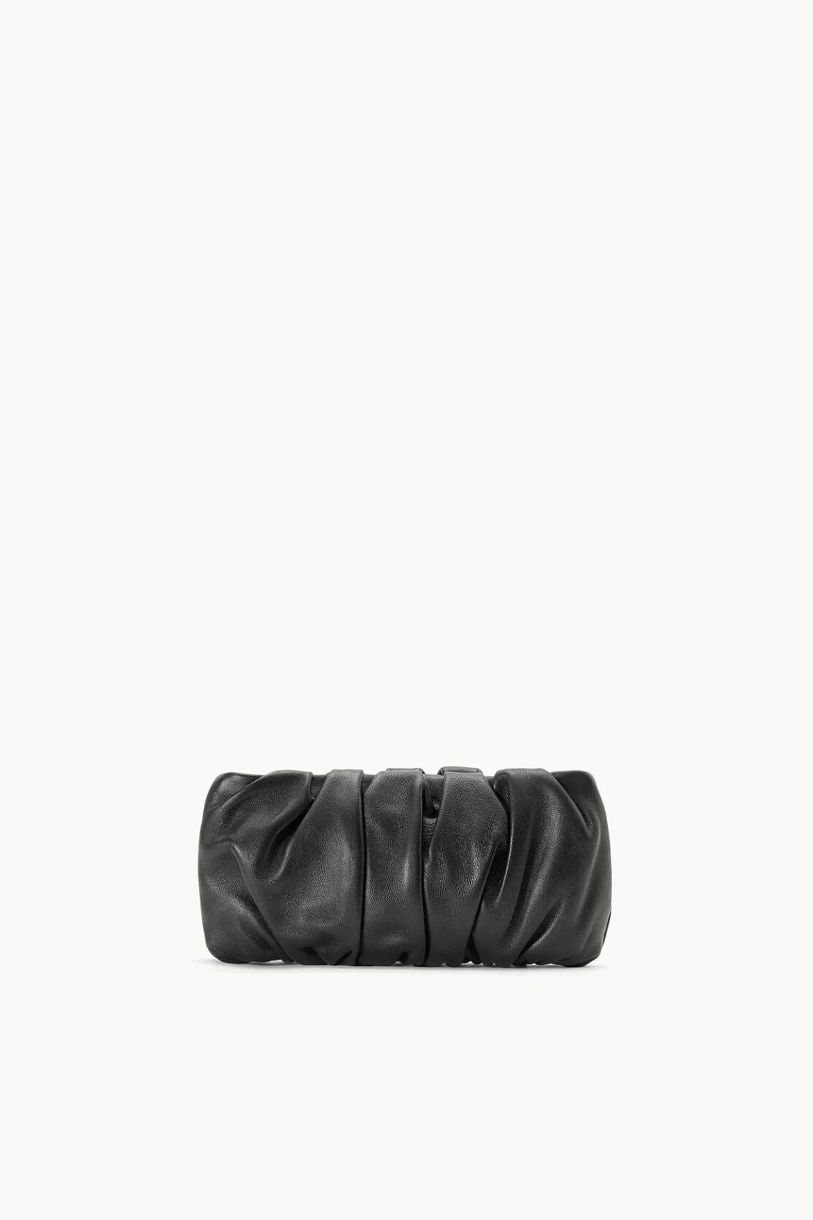 The Bean Bag is a small convertible clutch in soft leather. Thisstyle features a zipper closure, suede lining and removable shoulder strap.