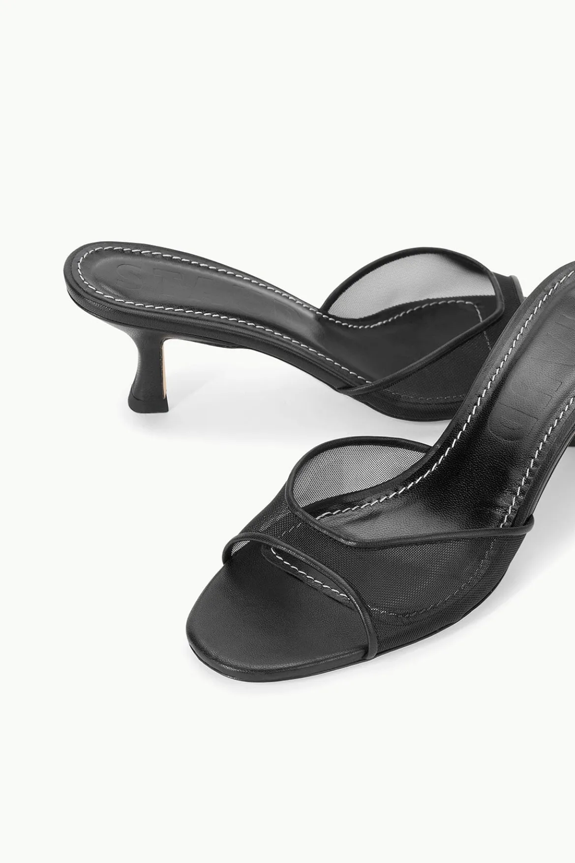 An open-toe mule crafted with mesh and soft nappa leather, the Brigitte is an essential kitten heel for versatile dressing.