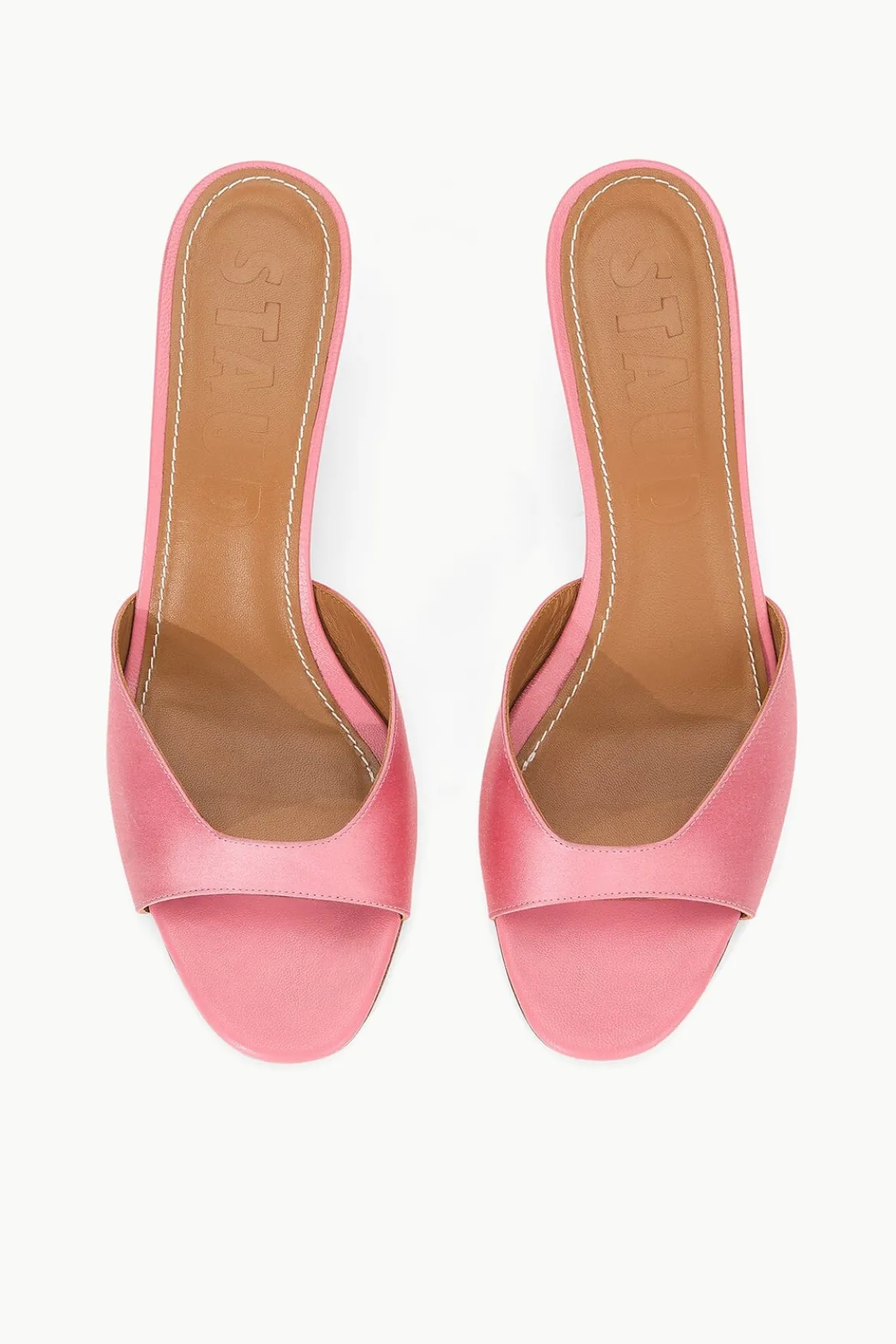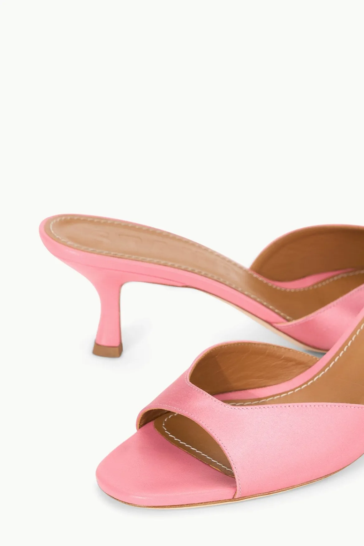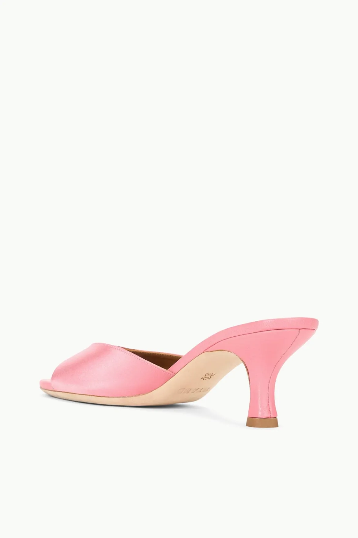 An open-toe mule crafted in satin, the Brigitte is an essential kitten heel for versatile dressing.