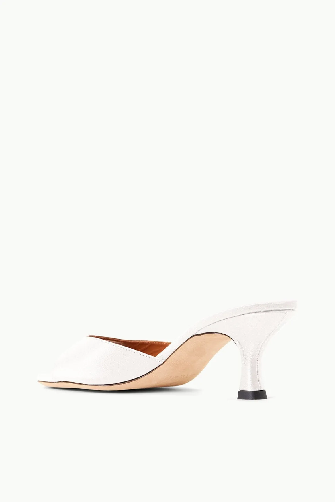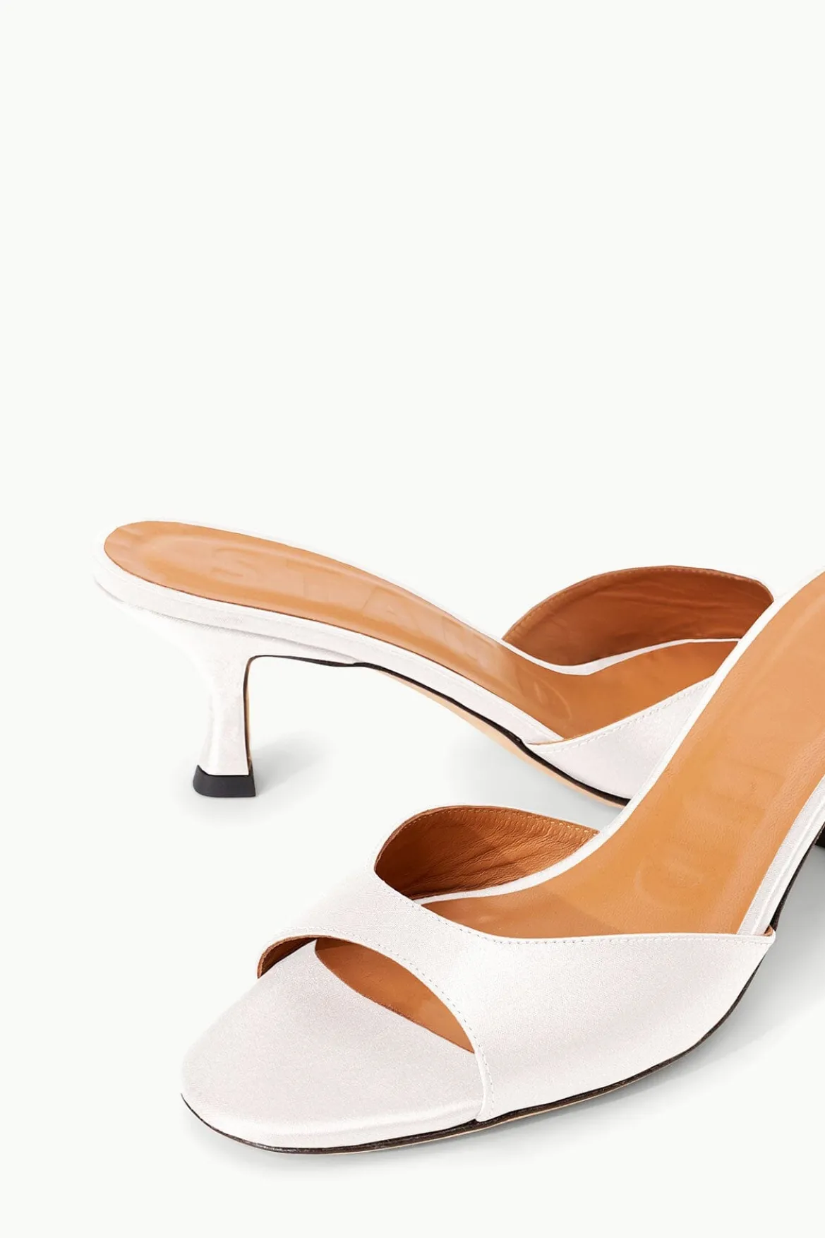 An open-toe mule crafted in satin, the Brigitte is an essential kitten heel for versatile dressing.