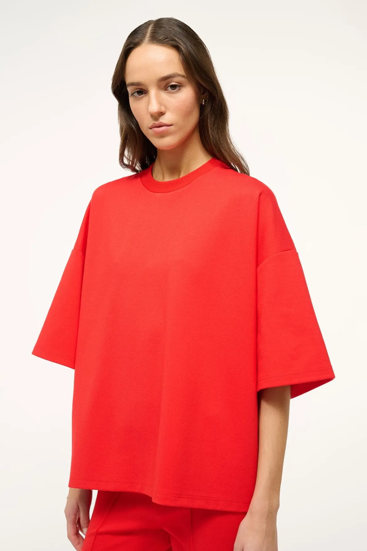 An oversized crewneck shirt in our ponte fabric with a rib neck trim. The Capsule Top is a perfect travel day essential when paired with our Knack Pant.
