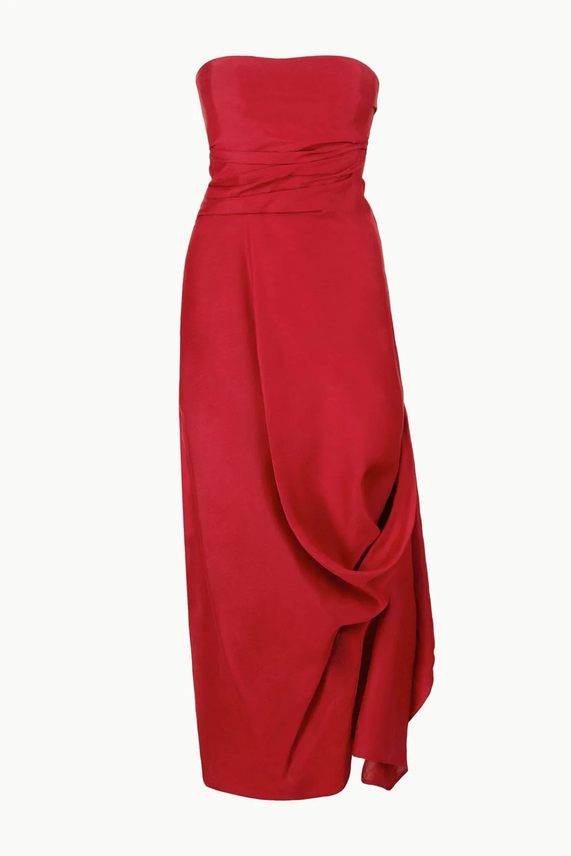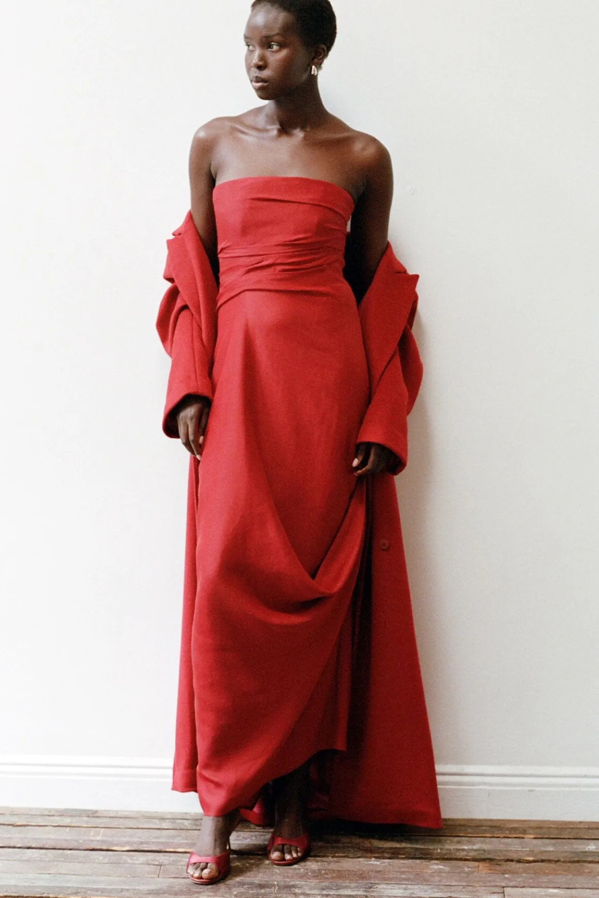 The Caravaggio Dress is a draped maxi made out of a silk wool blend. Featuring an interior structured corset, this style offers ease and support throughout.