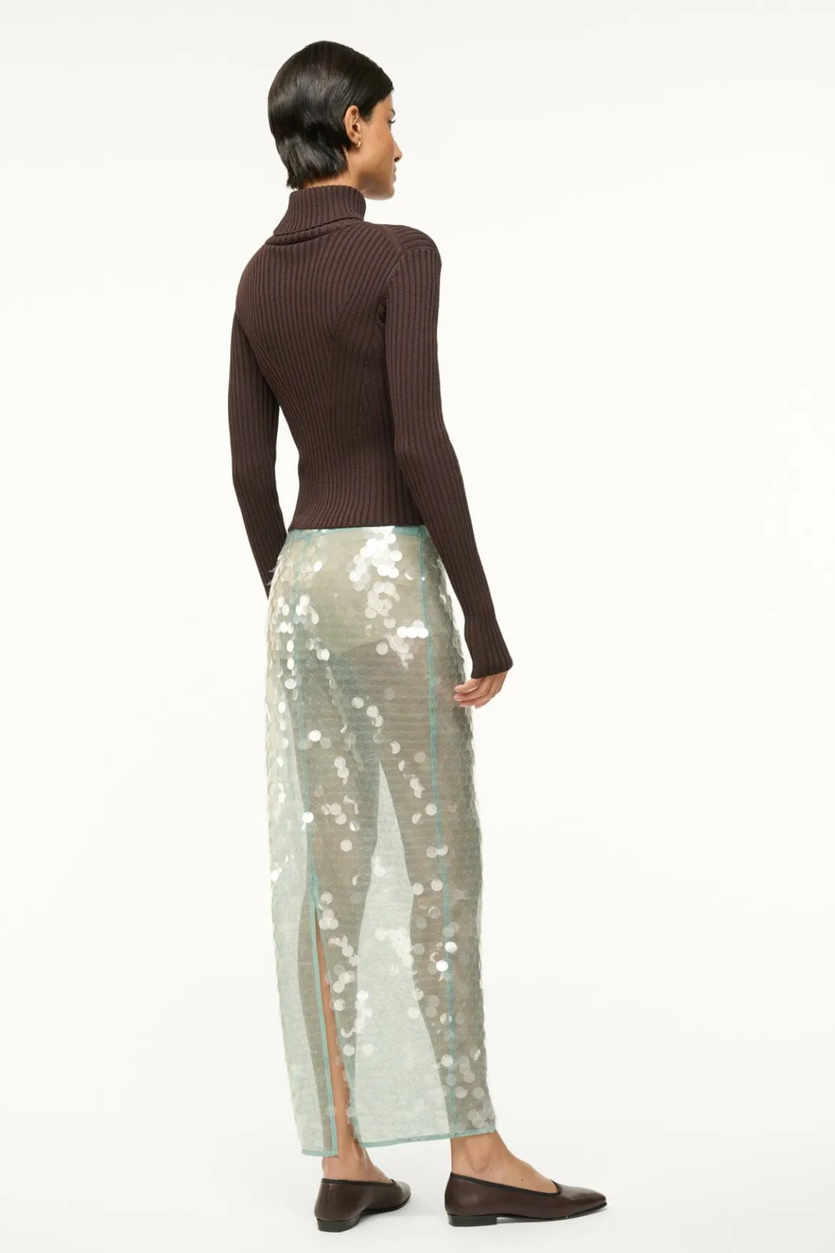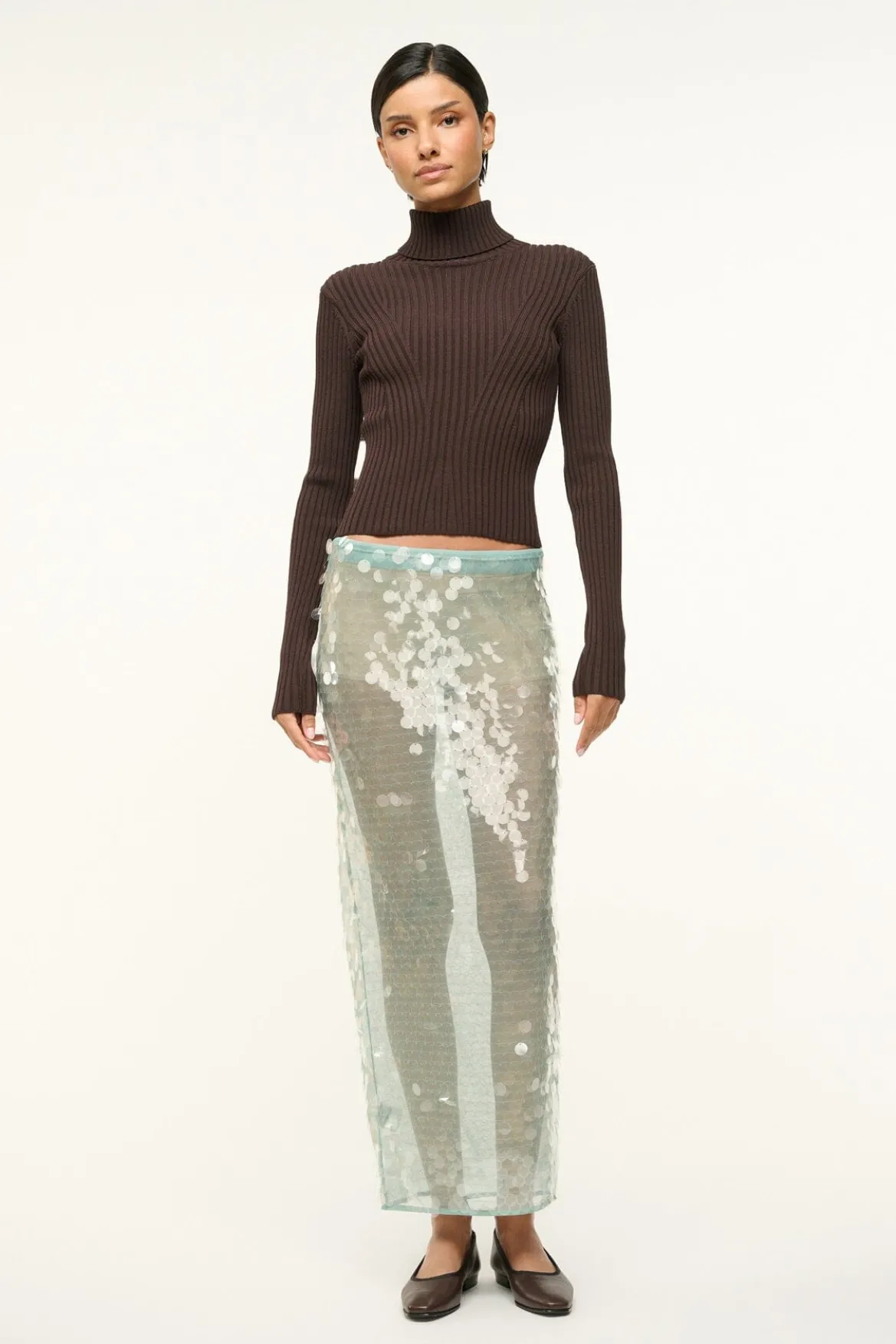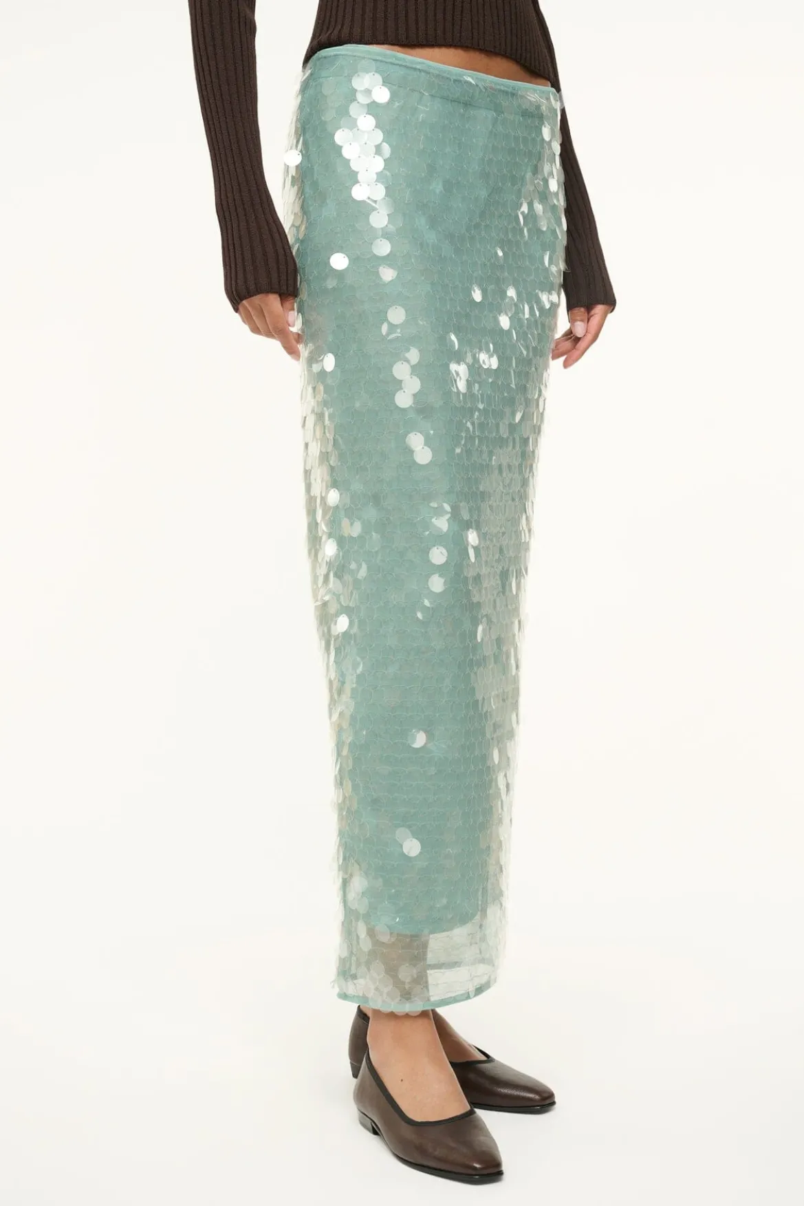A sequined, midi-length skirt, the Casey is the perfect versatile addition to your bottoms wardrobe. This style features a removable slip, offering ease of use and a sheer fashion statement all in one.