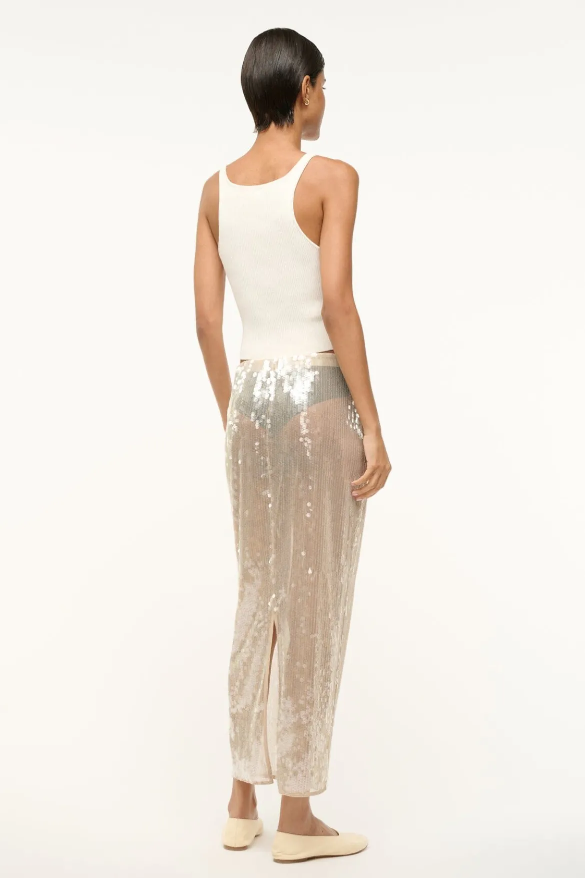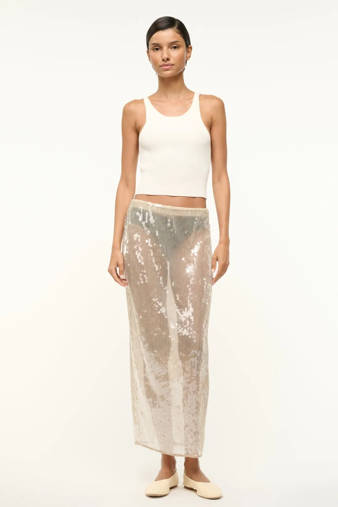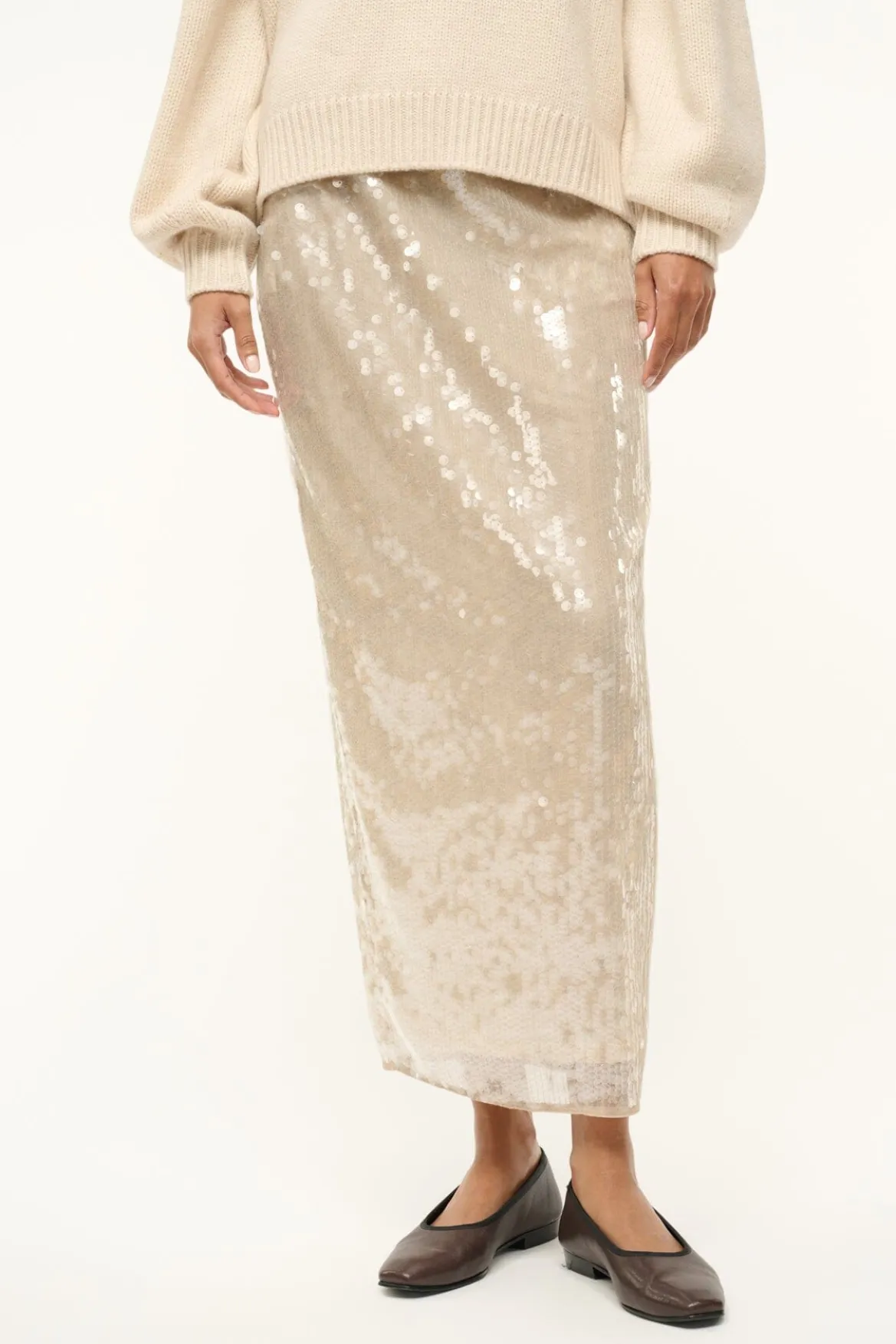 A sequined, midi-length skirt, the Casey is the perfect versatile addition to your bottoms wardrobe. This style features a removable slip, offering ease of use and a sheer fashion statement all in one.