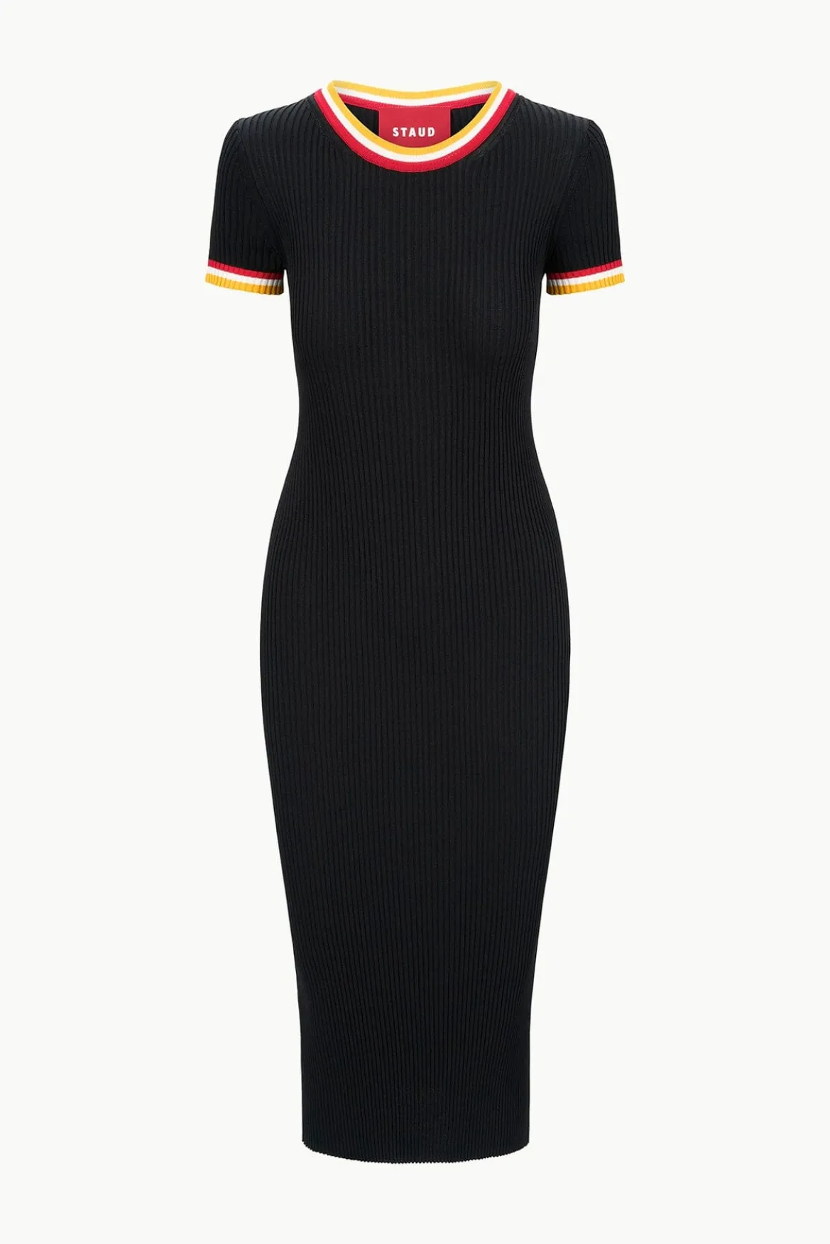 The Colleen Dress has been updated to support your favorite NFL teams. This special capsule features a NFL team logo on the back with a contrasting trim.