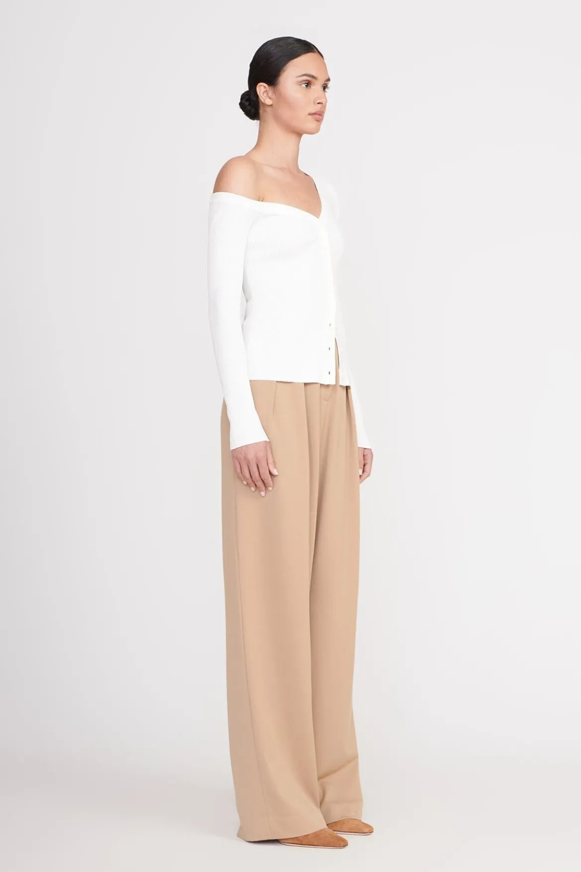 The Craftsman Sweater is our chic update to a classic fitted cardigan. This style is anoff-one-shoulder button up cardigan.
