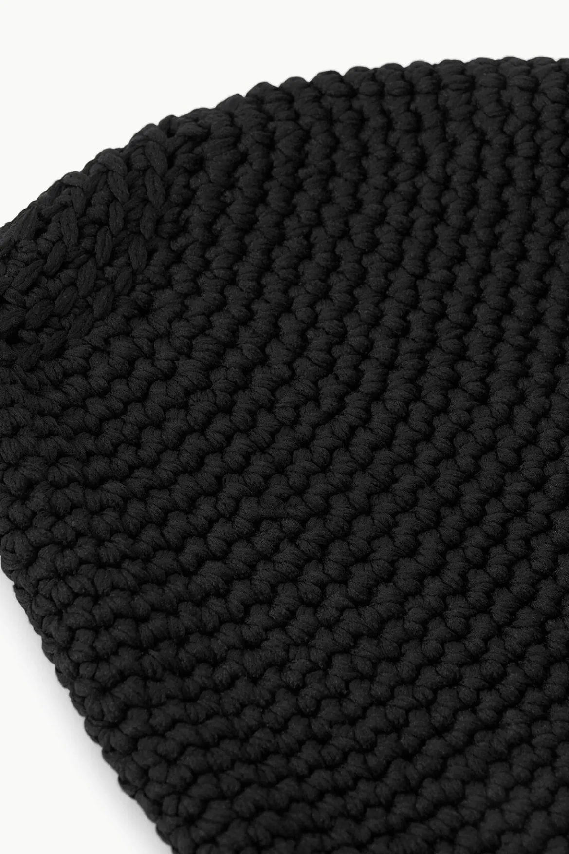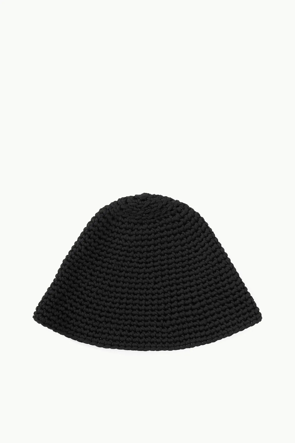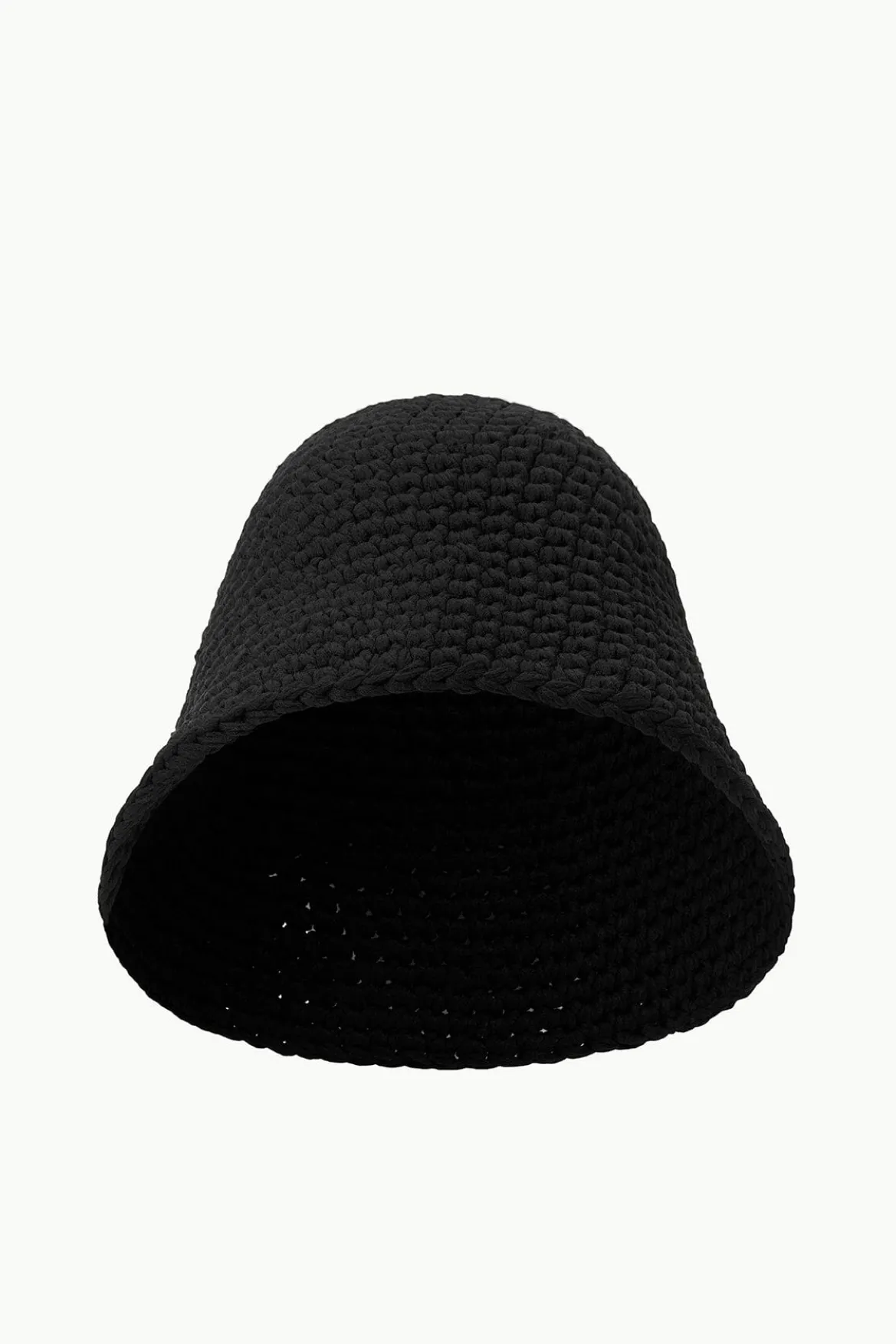 A hand crocheted bucket hat with a soft look and feel. Packs up easilyfor atrip without losing its shape.