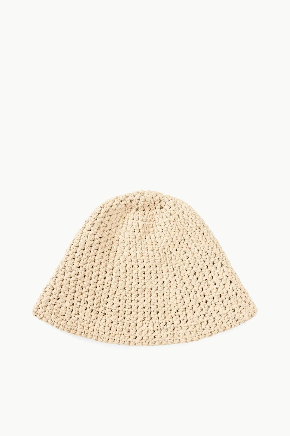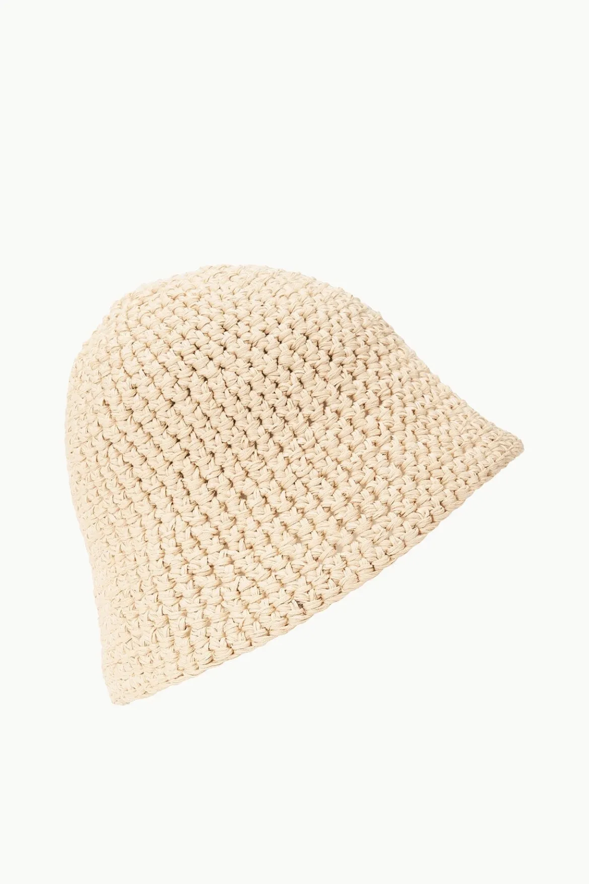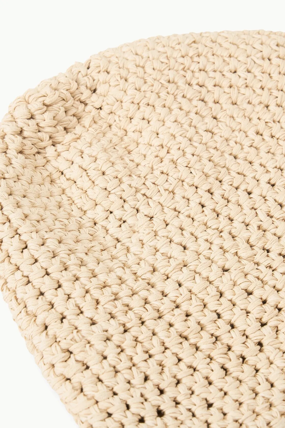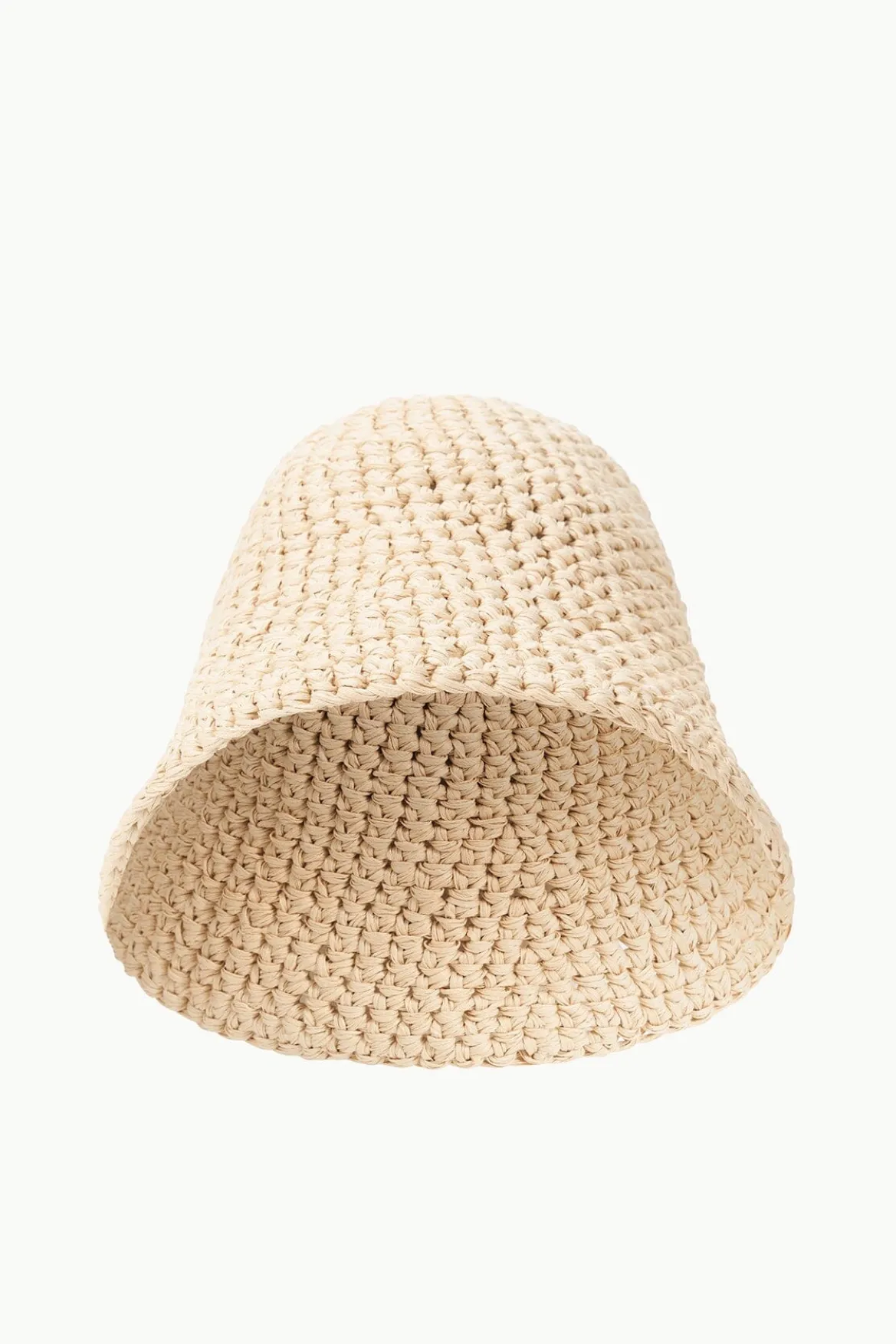 A hand crocheted bucket hat with a soft look and feel. Packs up easilyfor atrip without losing its shape.