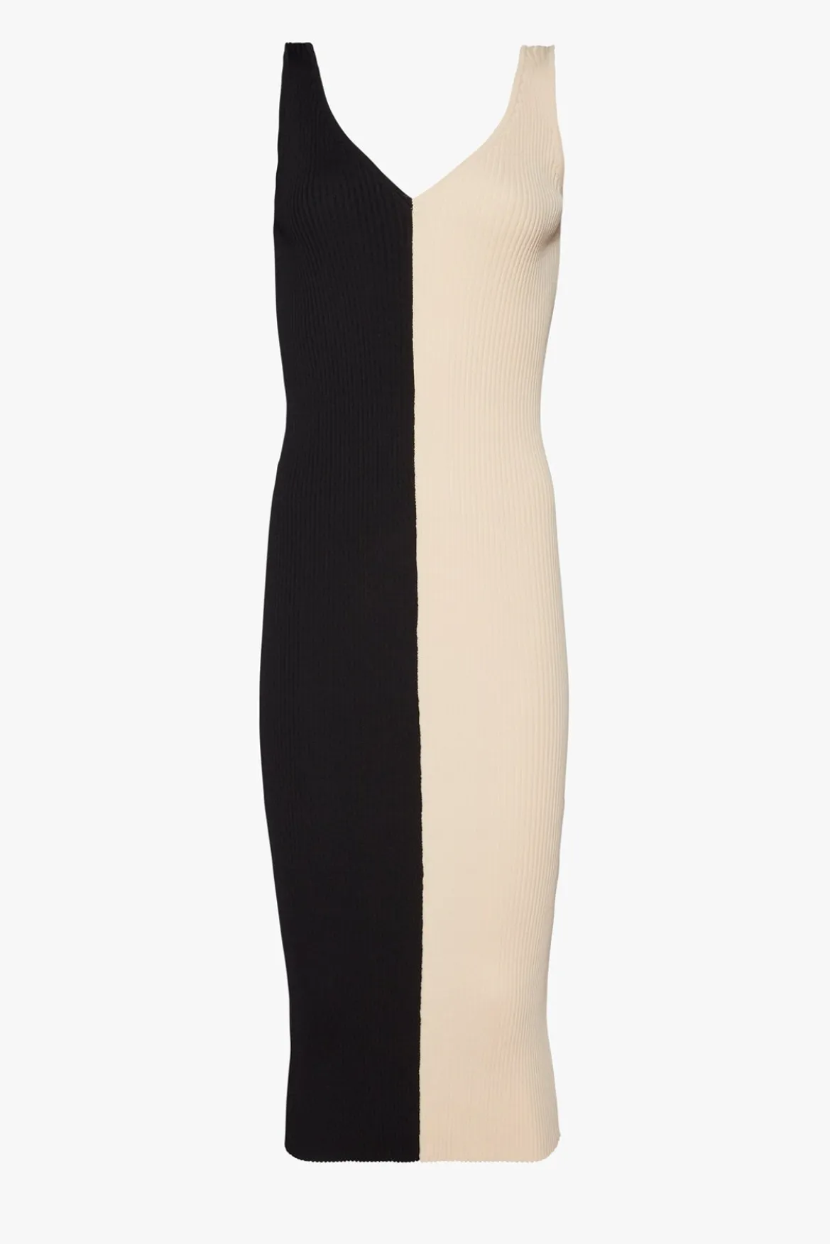 The Dana Dress is a two-toned sleeveless dress constructed out of our signature compact ribbed knit fabric. This style pairs perfectly with our Shoko & Cargo cardigans.