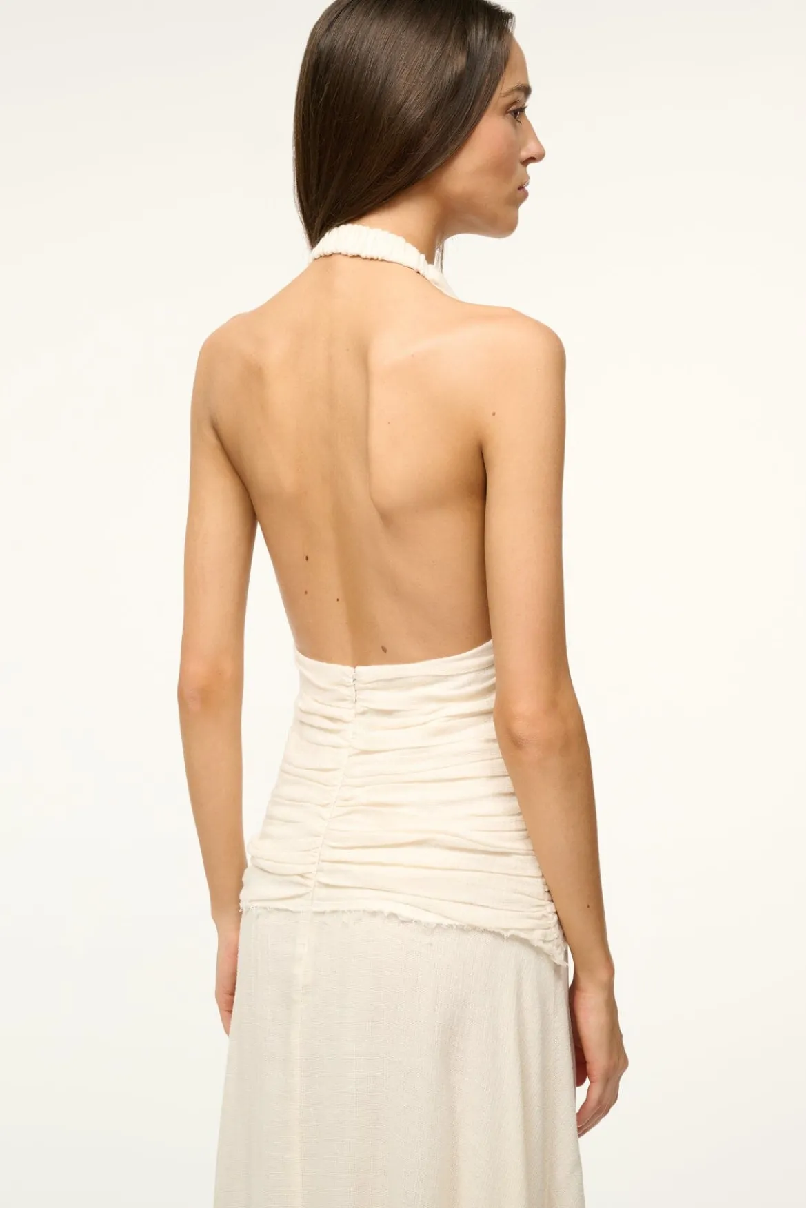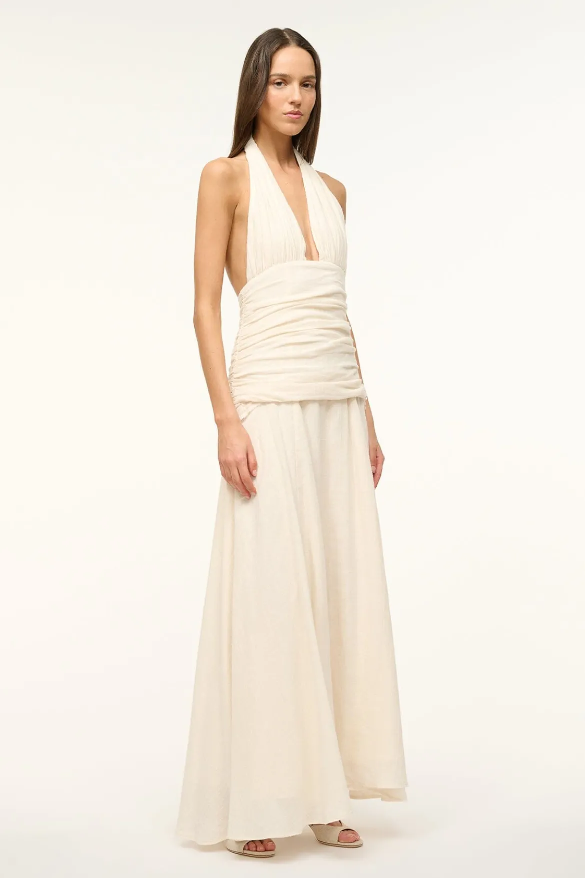 The Frolic is a halter neck maxi dress crafted from a lightweight cotton gauze with gathers at the waist and bust.