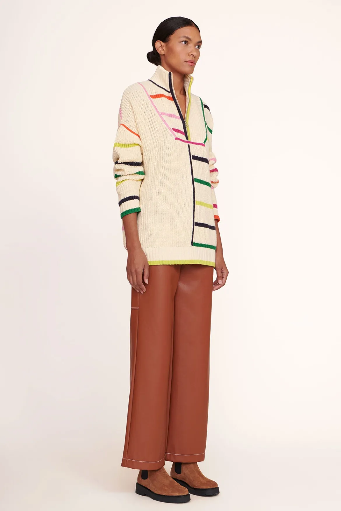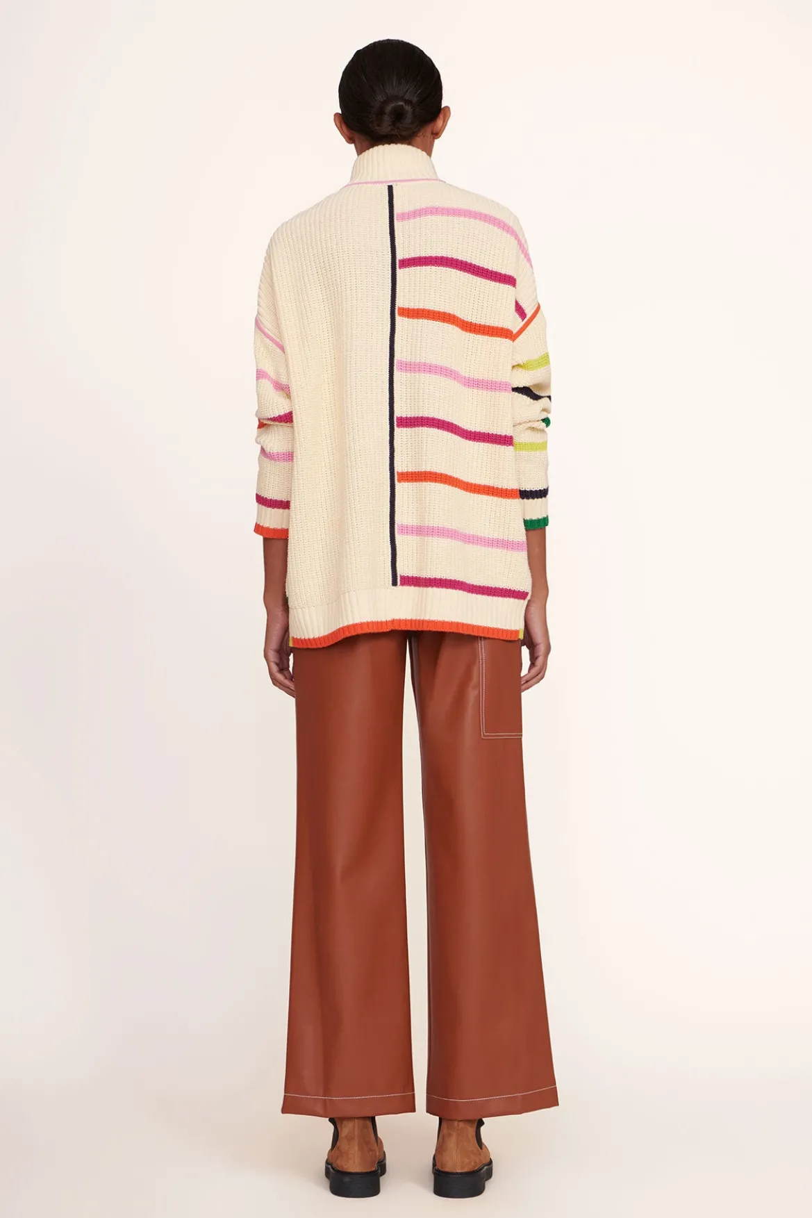 Our chunky cotton knit Hampton Sweater is an oversized boyfriend-style sweater in a bright, colorful stripe pattern. This style features a half-zip detail at the front.