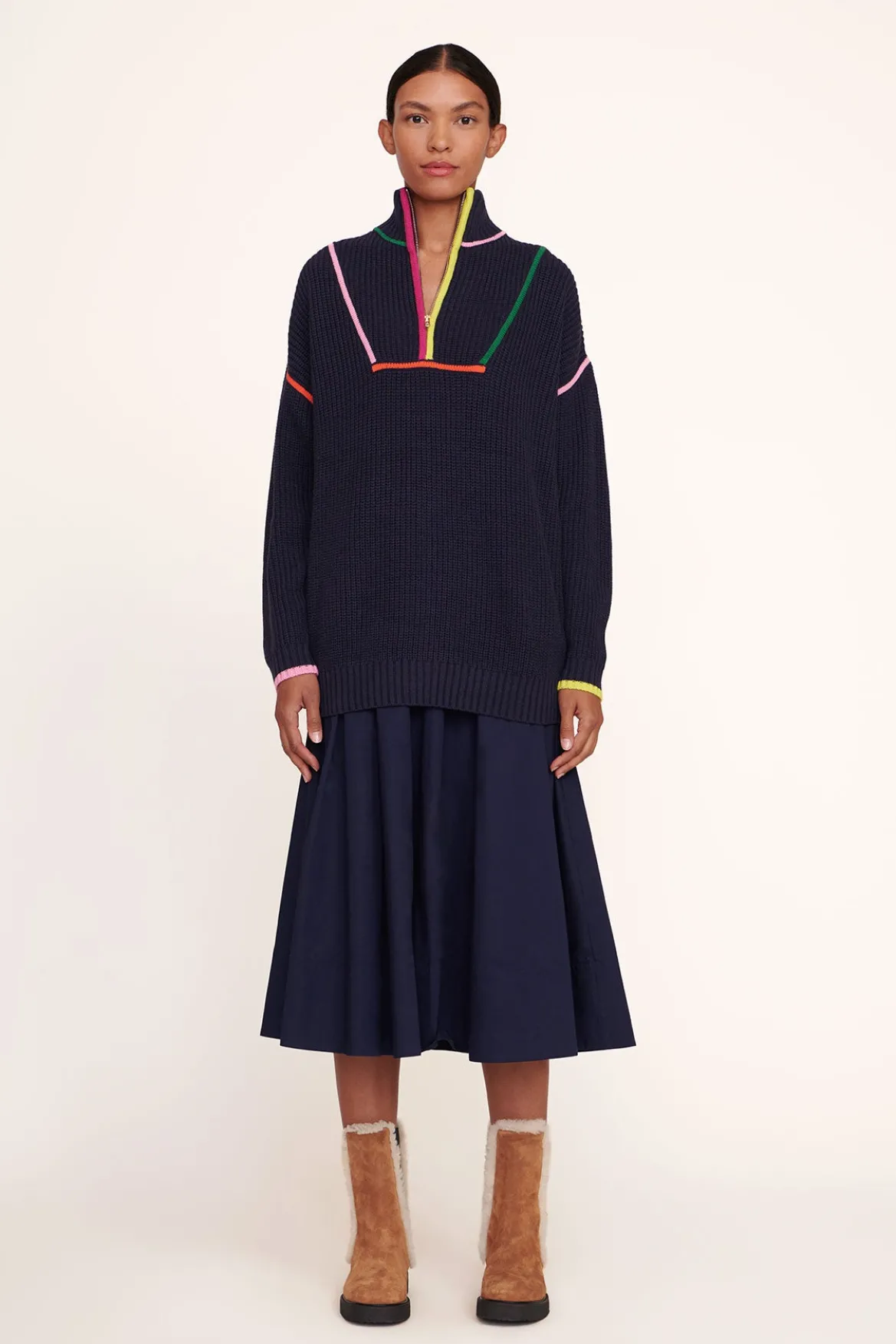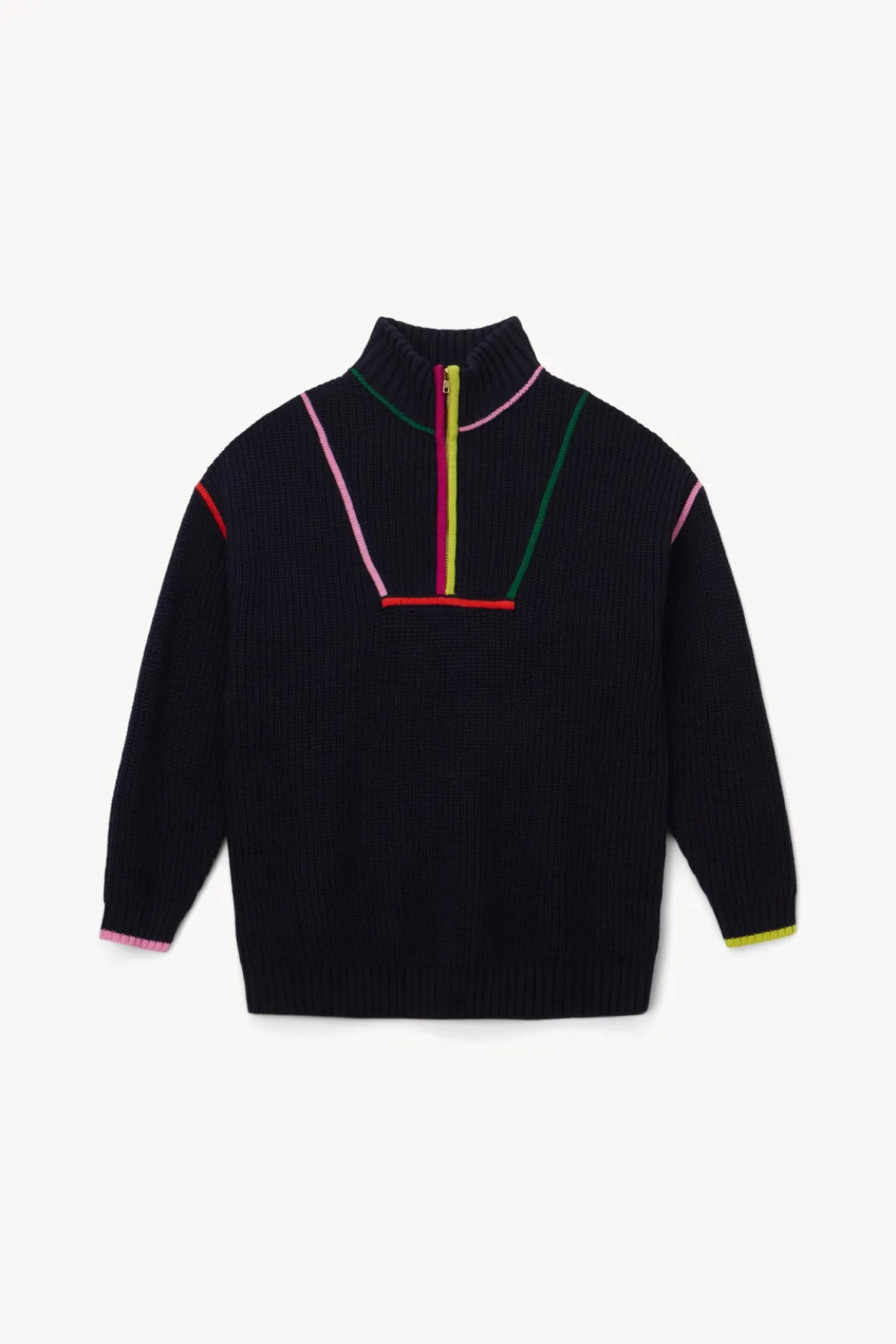 Our chunky cotton knit Hampton Sweater is an oversized boyfriend-style sweater in bright, colorful patterns. This style features a half-zip detail at the front