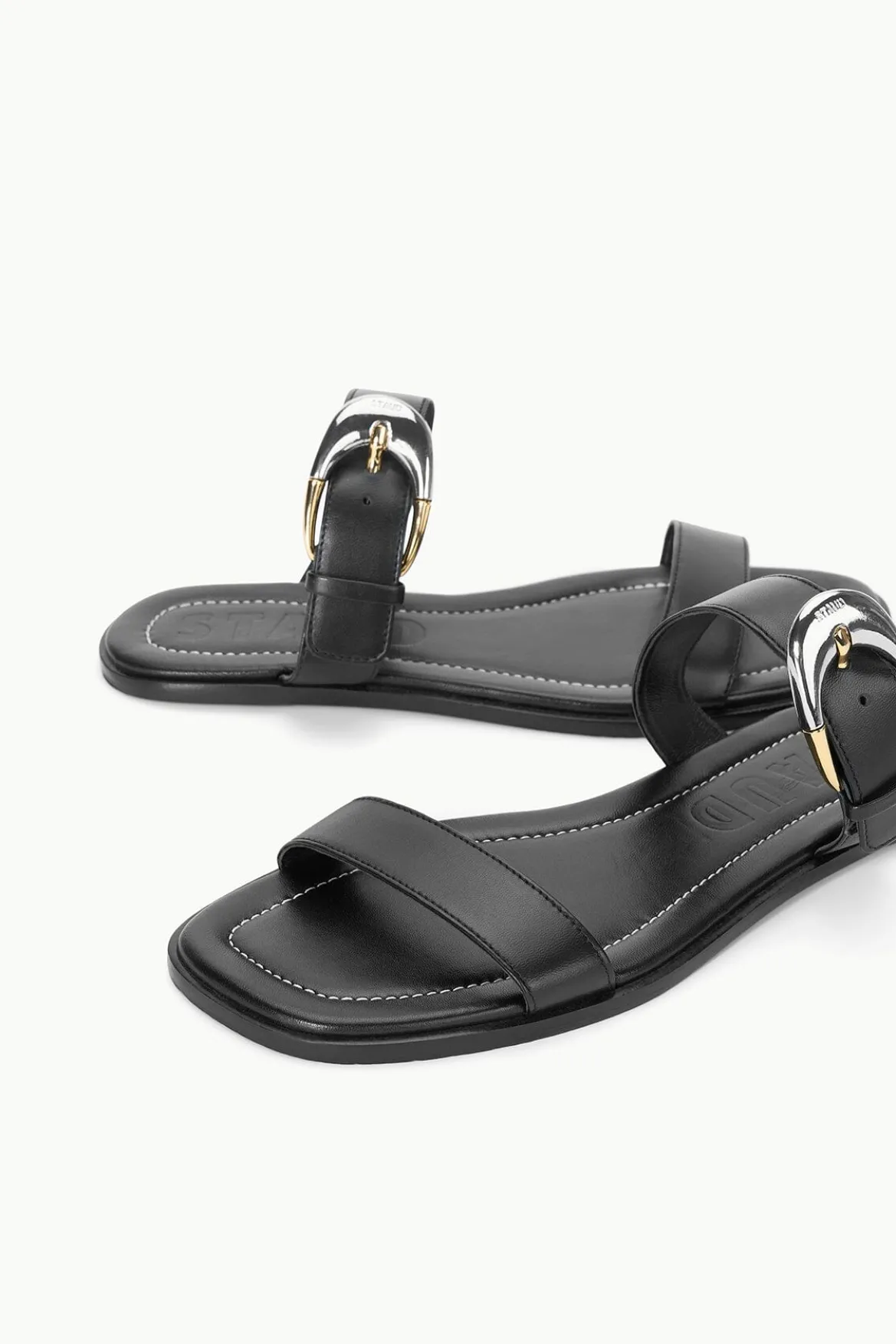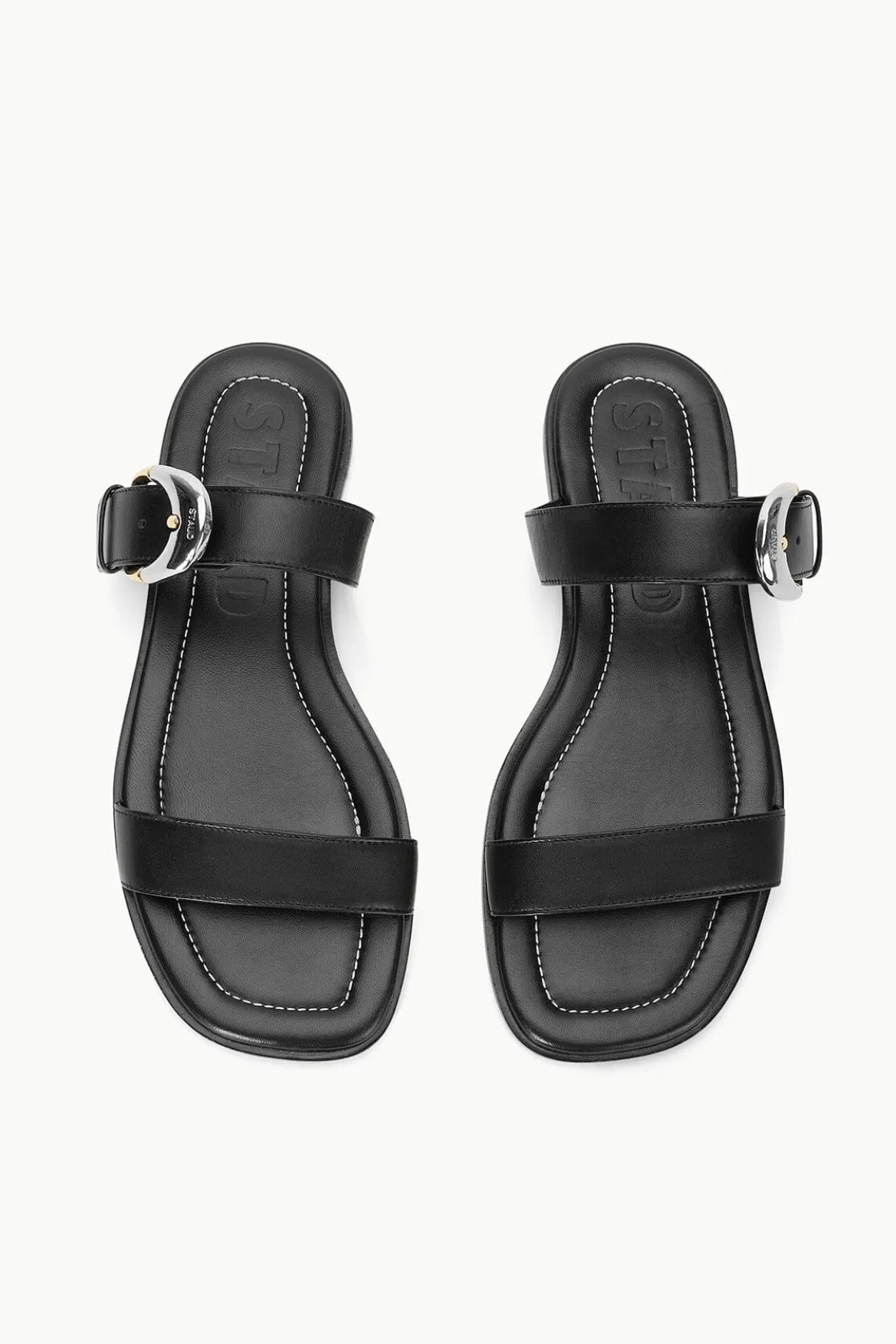 Our newest footwear family, the Harlow is offered in a flat slip-on sandal featuring our moon buckle detailing on an adjustable strap.