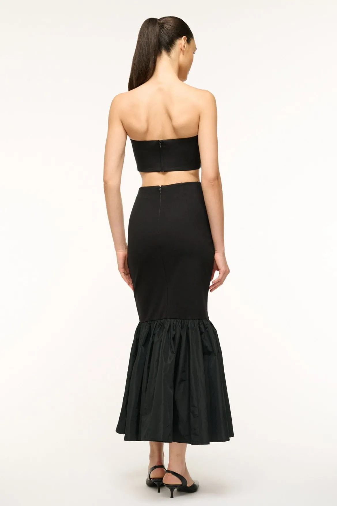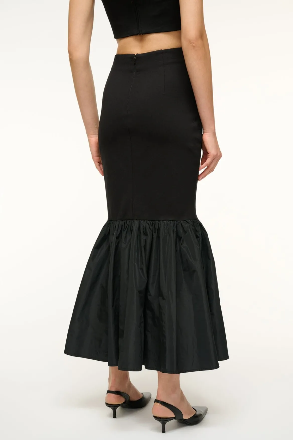 A high-rise maxi skirt made from our stretchy ponte knit. The Hawthorne Skirt features a tafetta ruffle tier and completes a matching set with the Palladium Top.