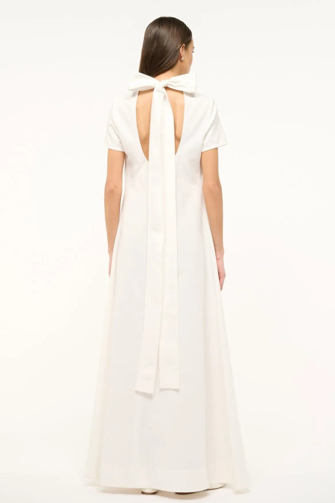 The ultimate statement dress. The Ilana is a maxi length gown with an a-line shape, open back and self-tie neck detail.