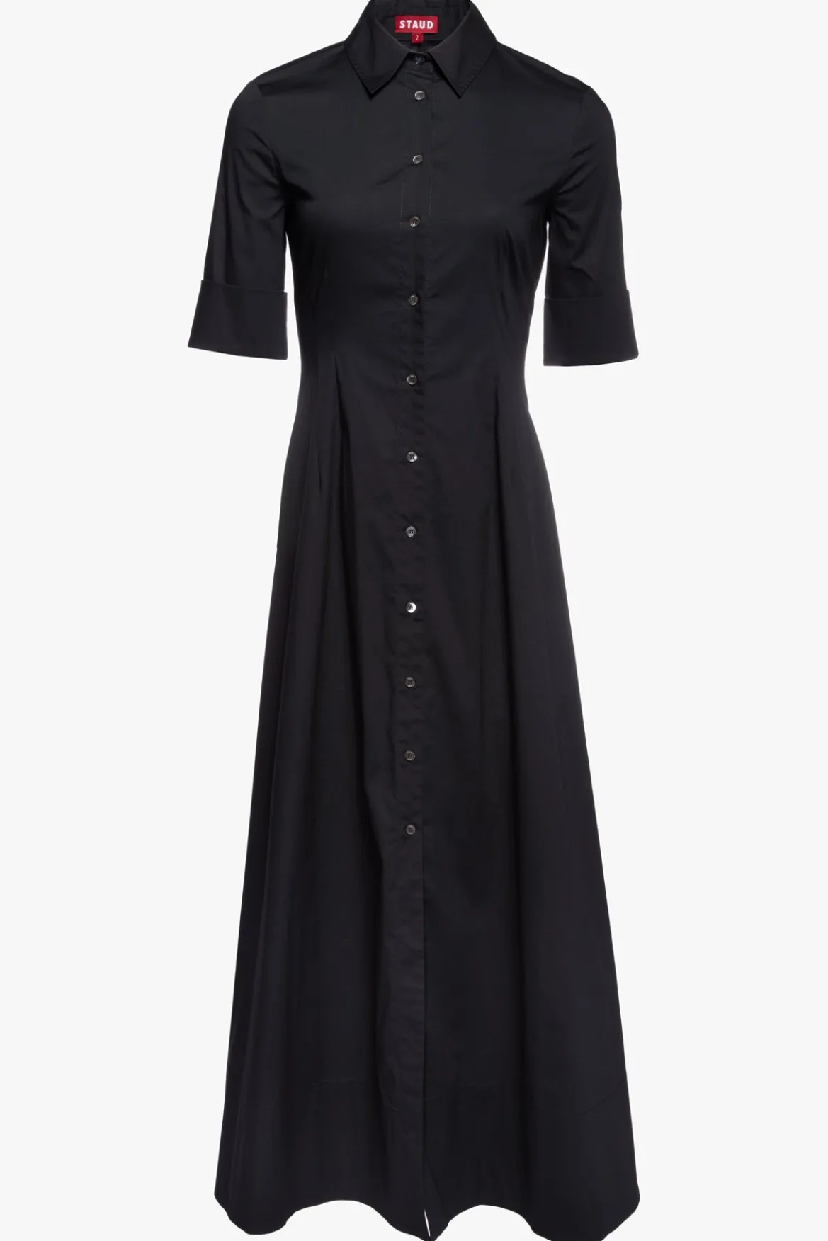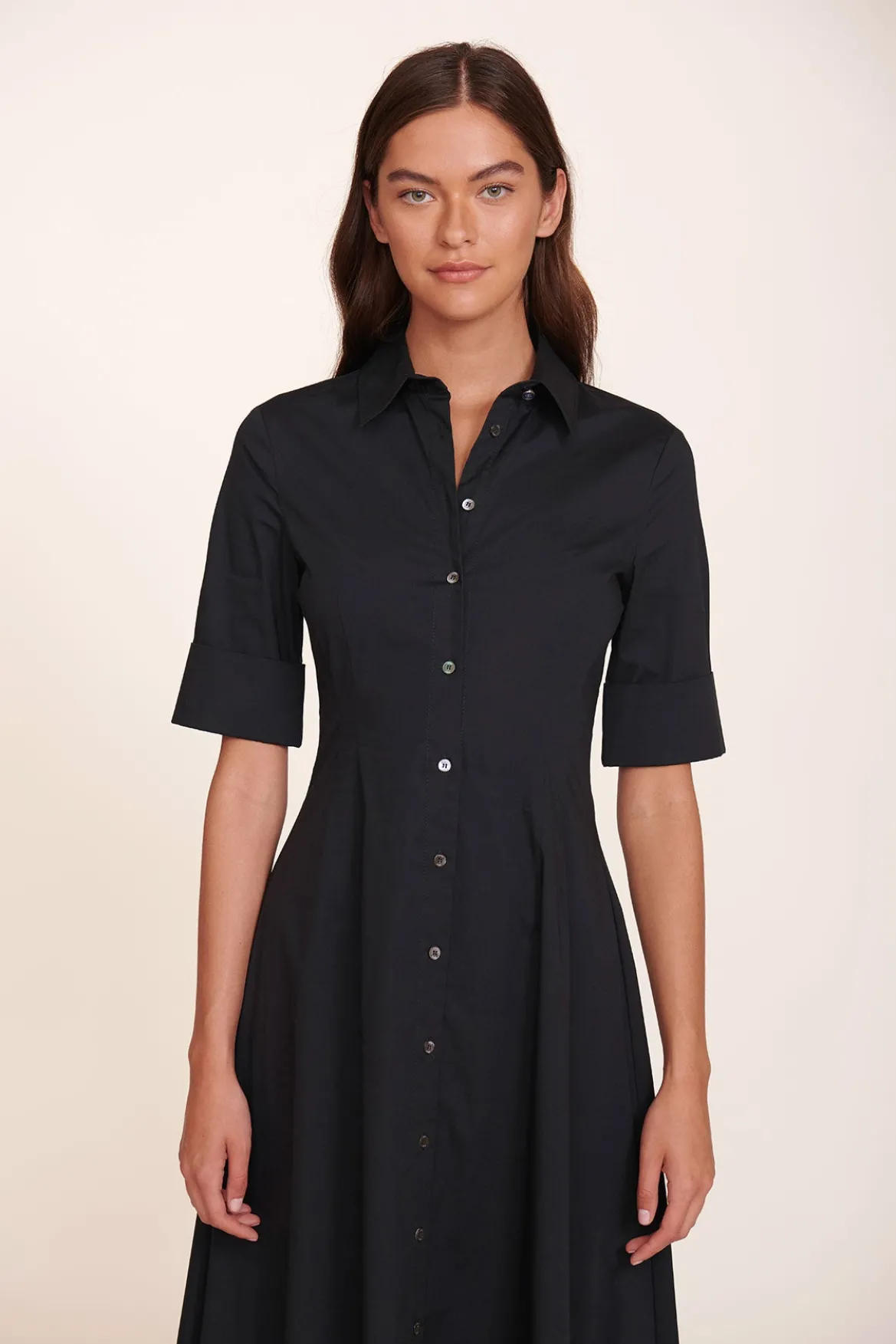 A maxi shirt dress made out of stretchy cotton poplin, the Joan Dress is a modern yet polished take on a classic.