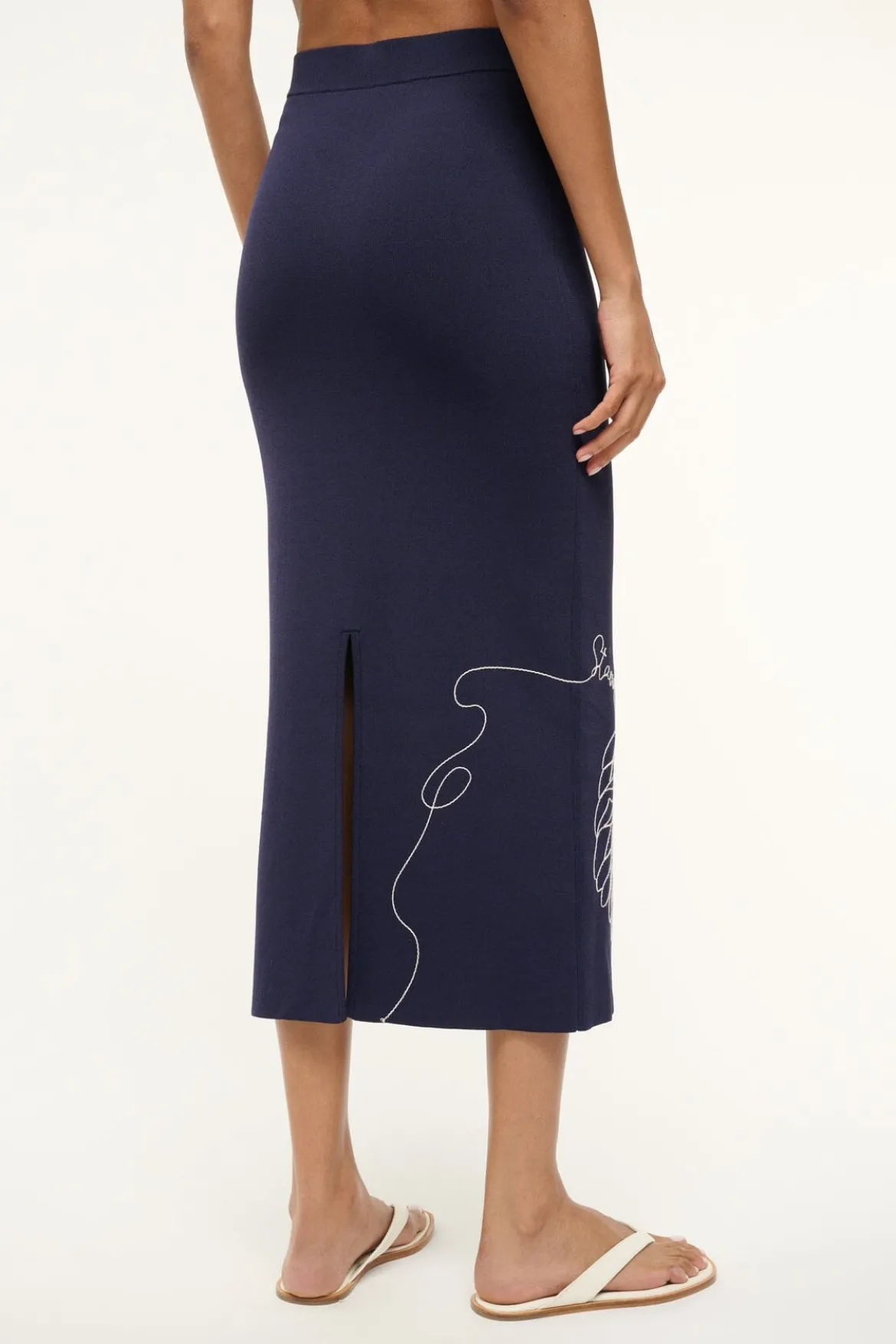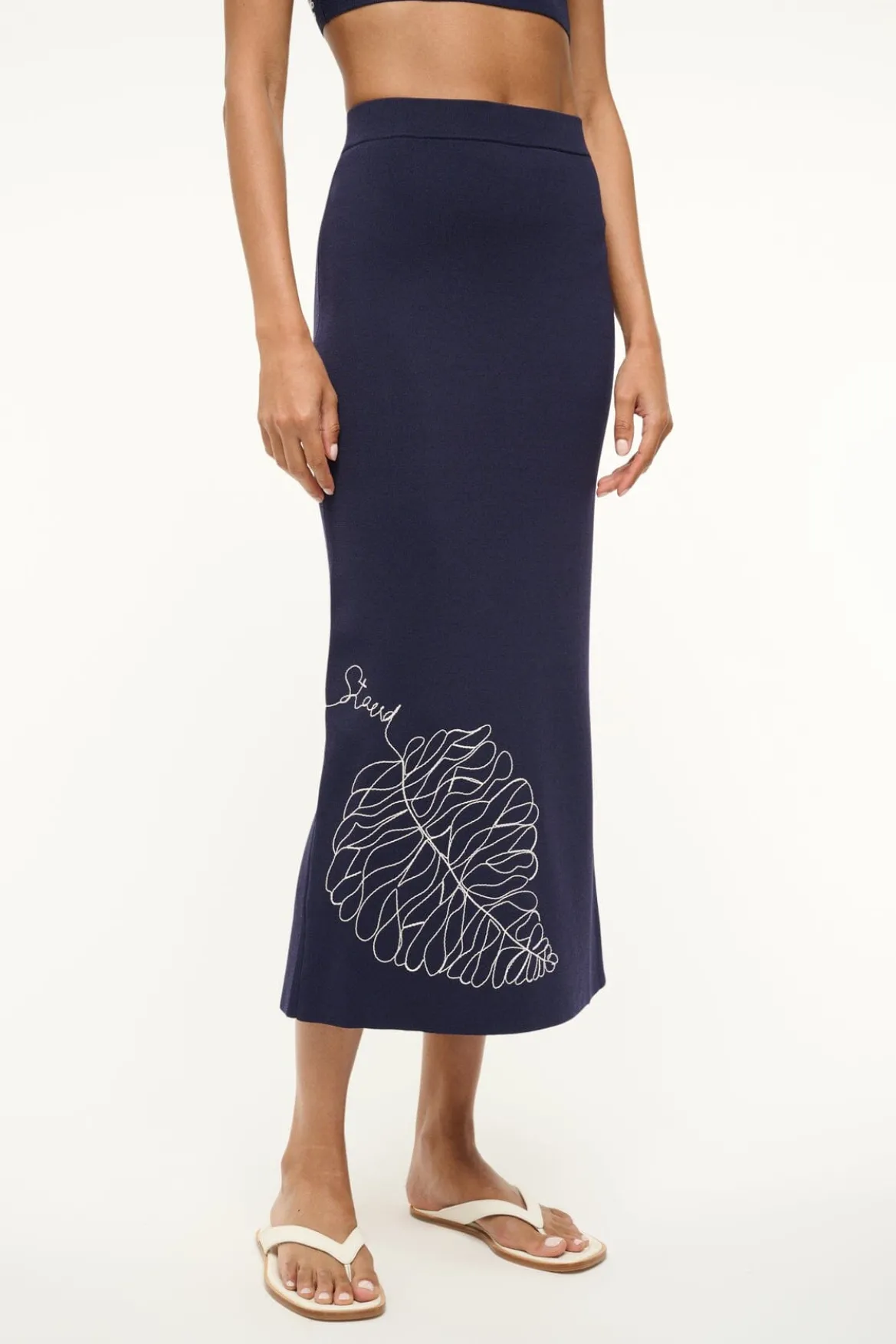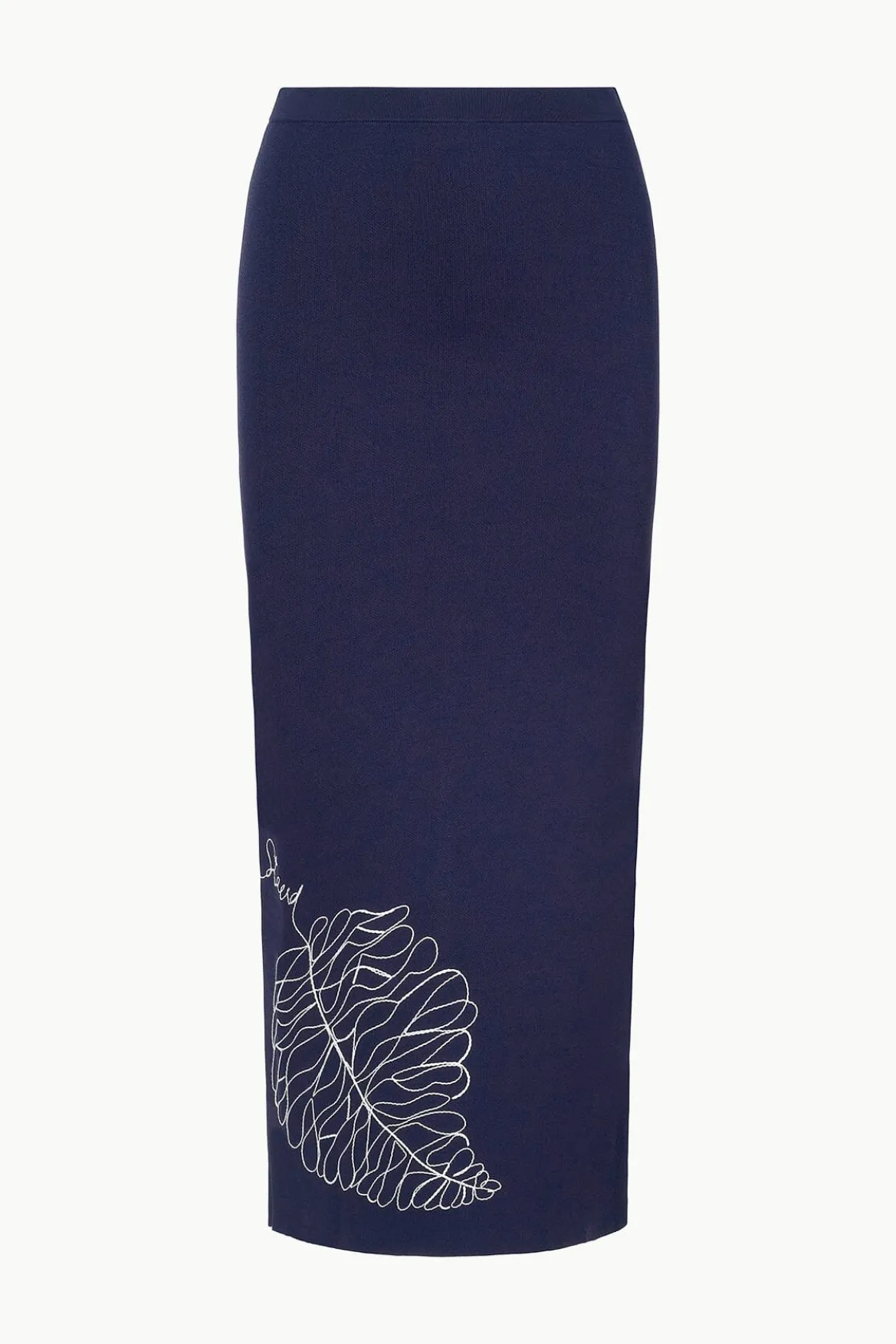 The Karina is a fitted ankle-length skirt made out of a stretchy compact knit fabric. It features a side slit and pairs back to the Zola Top for a matching set.