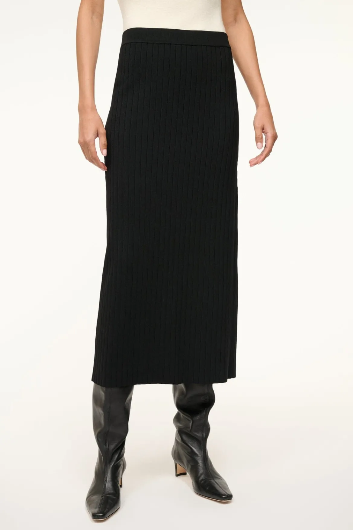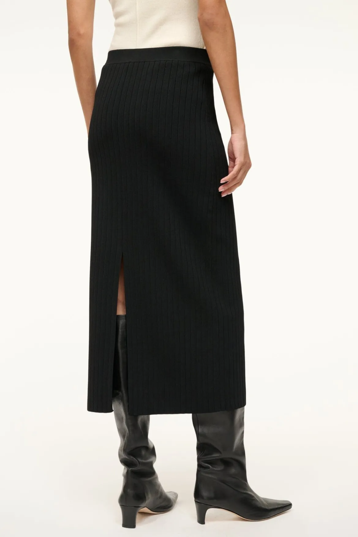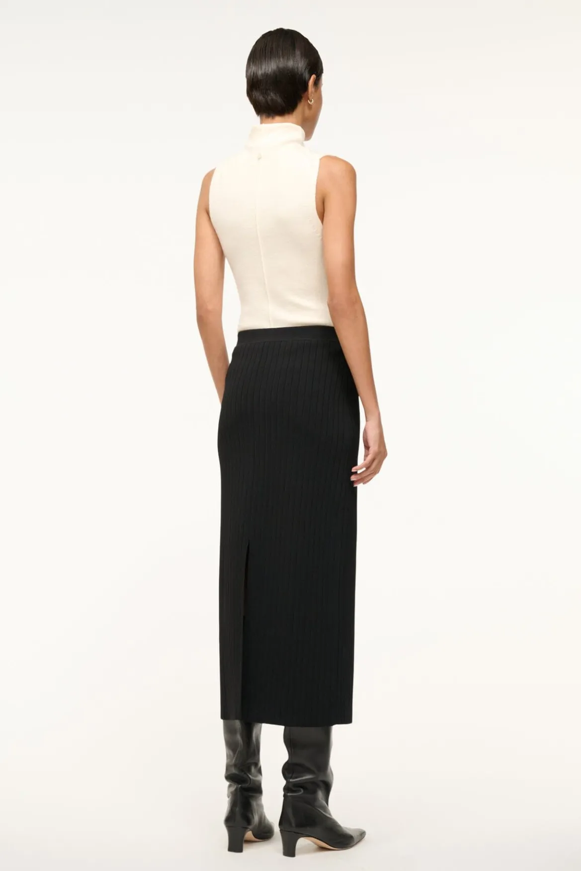 The Lyle is a new pencil skirt silhouette crafted in our comfortable compact knit fabric. This style is pull-on and has a back slit.