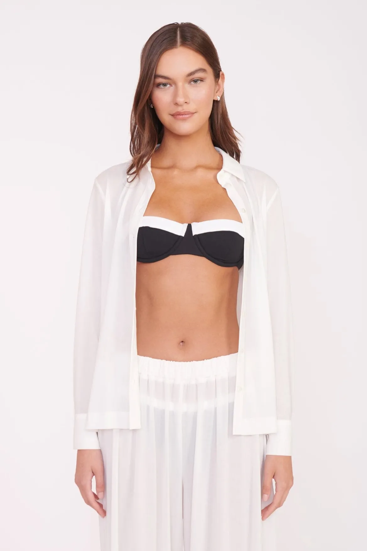 A flowy swim coverup pant, the Marza is a relaxed, pull-on, elastic waist pant made with stretch mesh that can be paired with the Miriam Top for a full look.