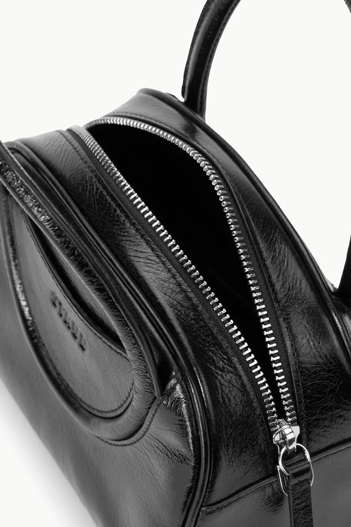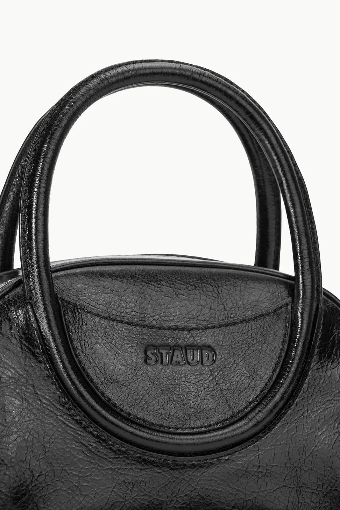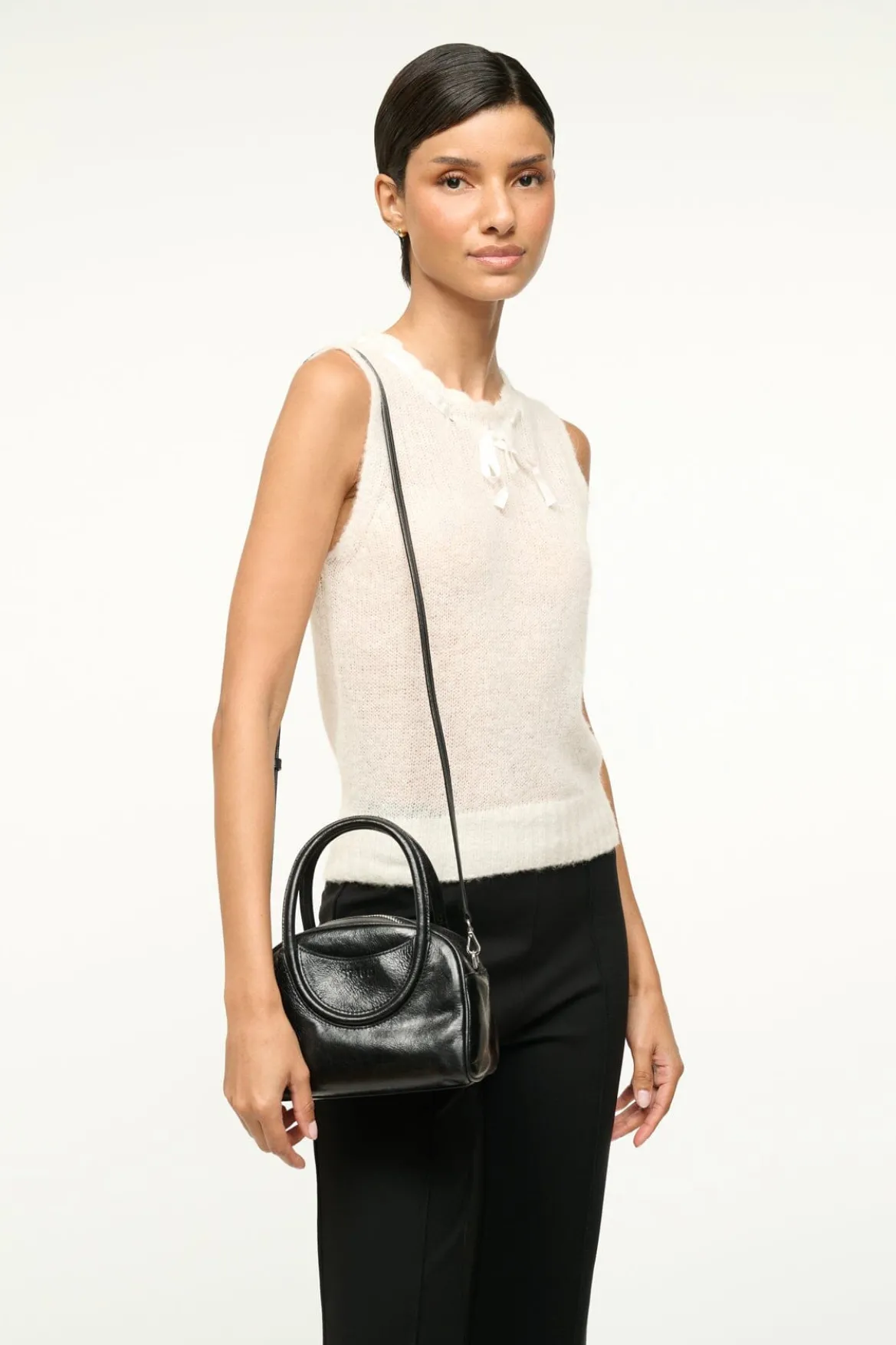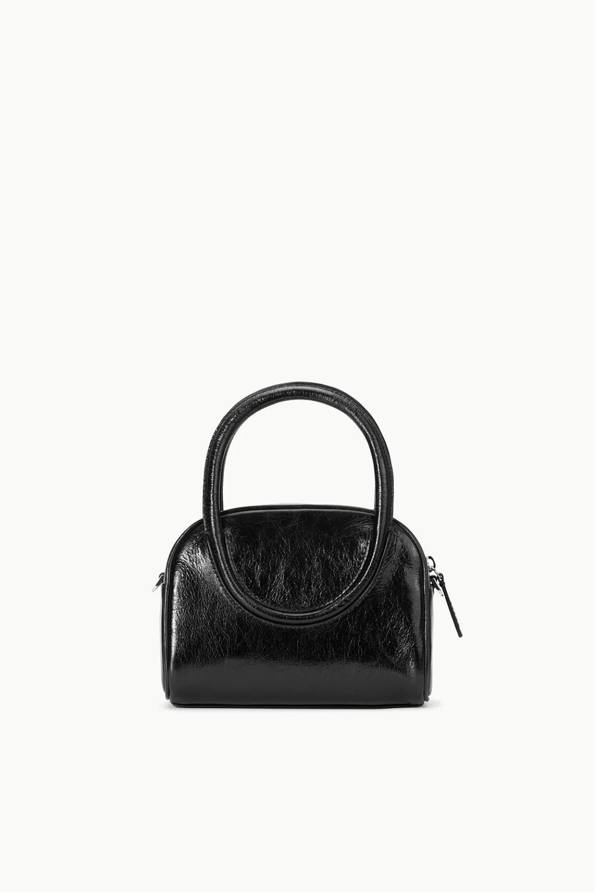 The Maude Mini Bowler Bag is the perfect style to dress up or dress down. This style features rounded handles and a removable, adjustable, crossbody strap. Made out of a slightly shiny crinkle leather.