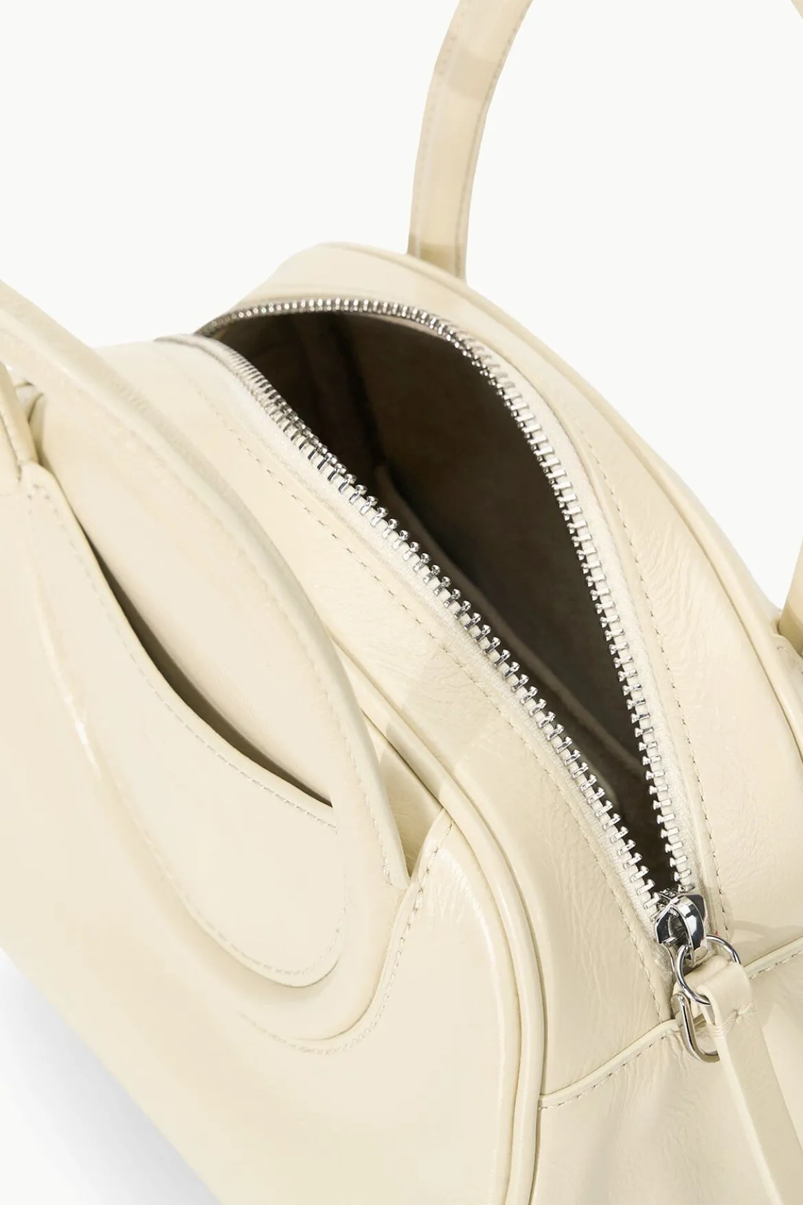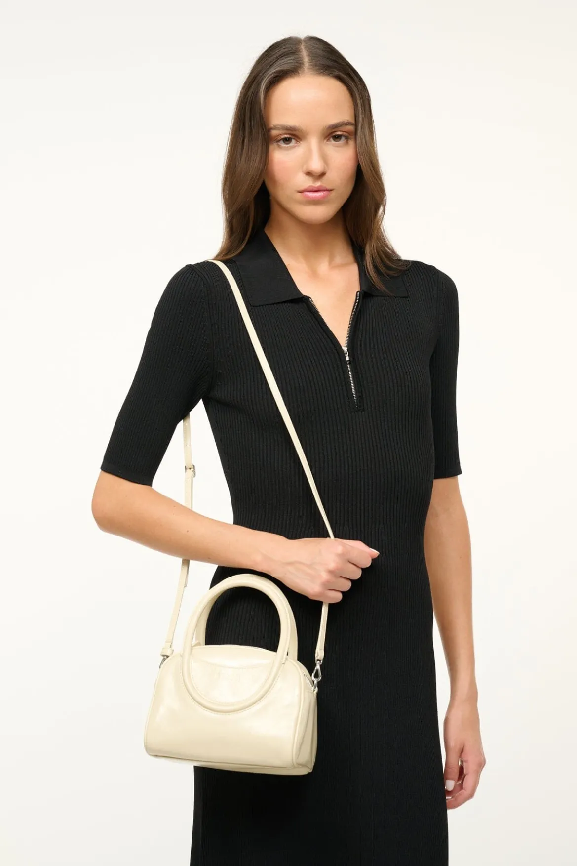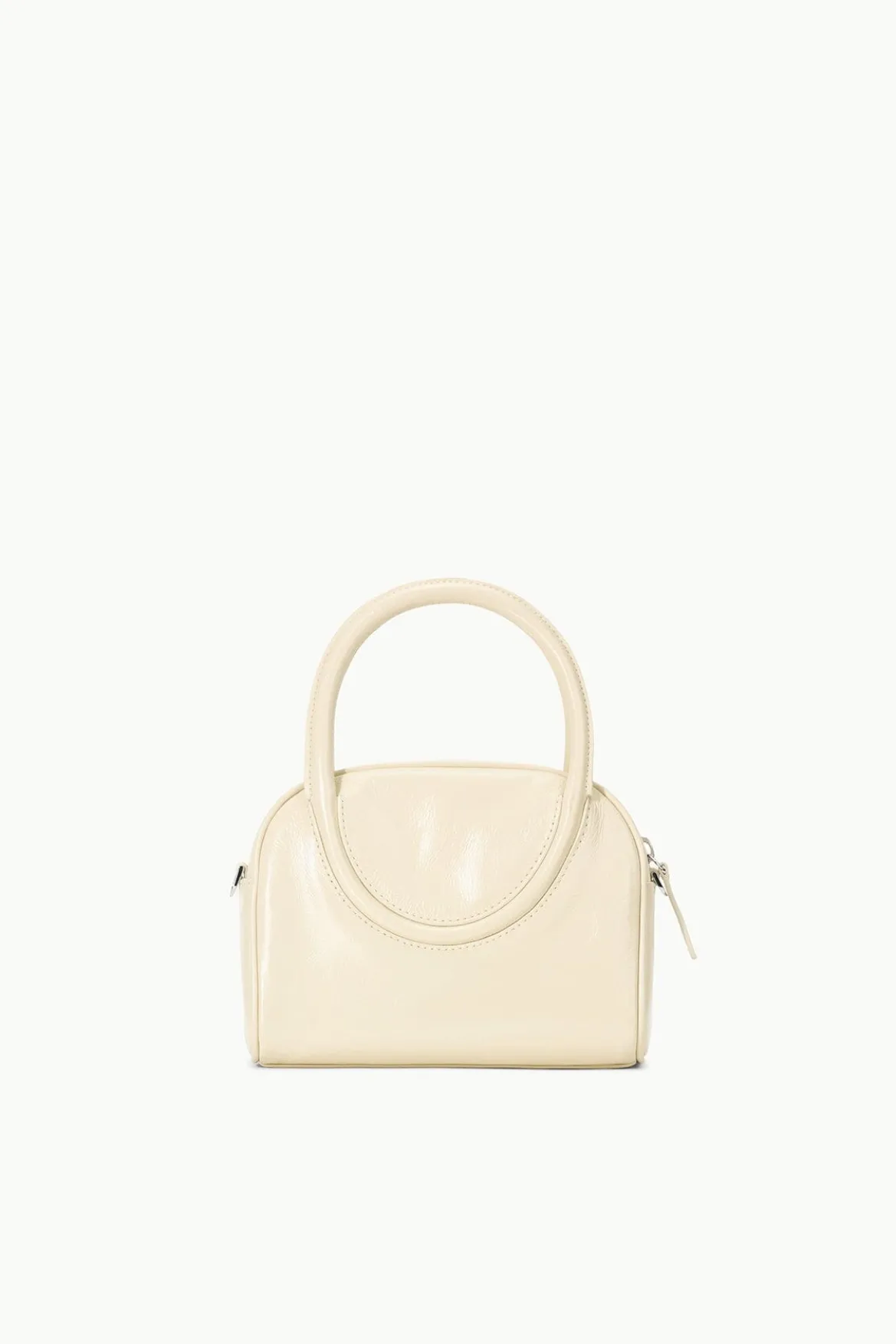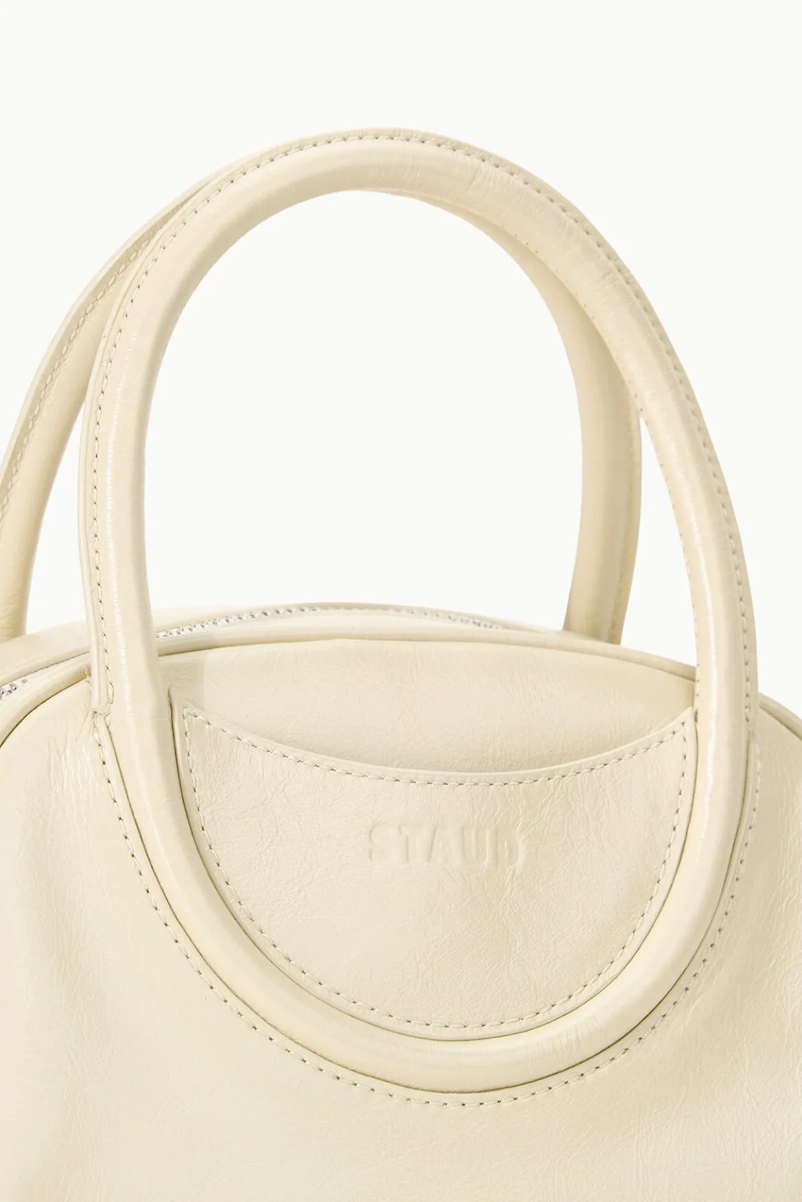 The Maude Mini Bowler Bag is the perfect style to dress up or dress down. This style features rounded handles and a removable, adjustable, crossbody strap. Made out of a slightly shiny crinkle leather.