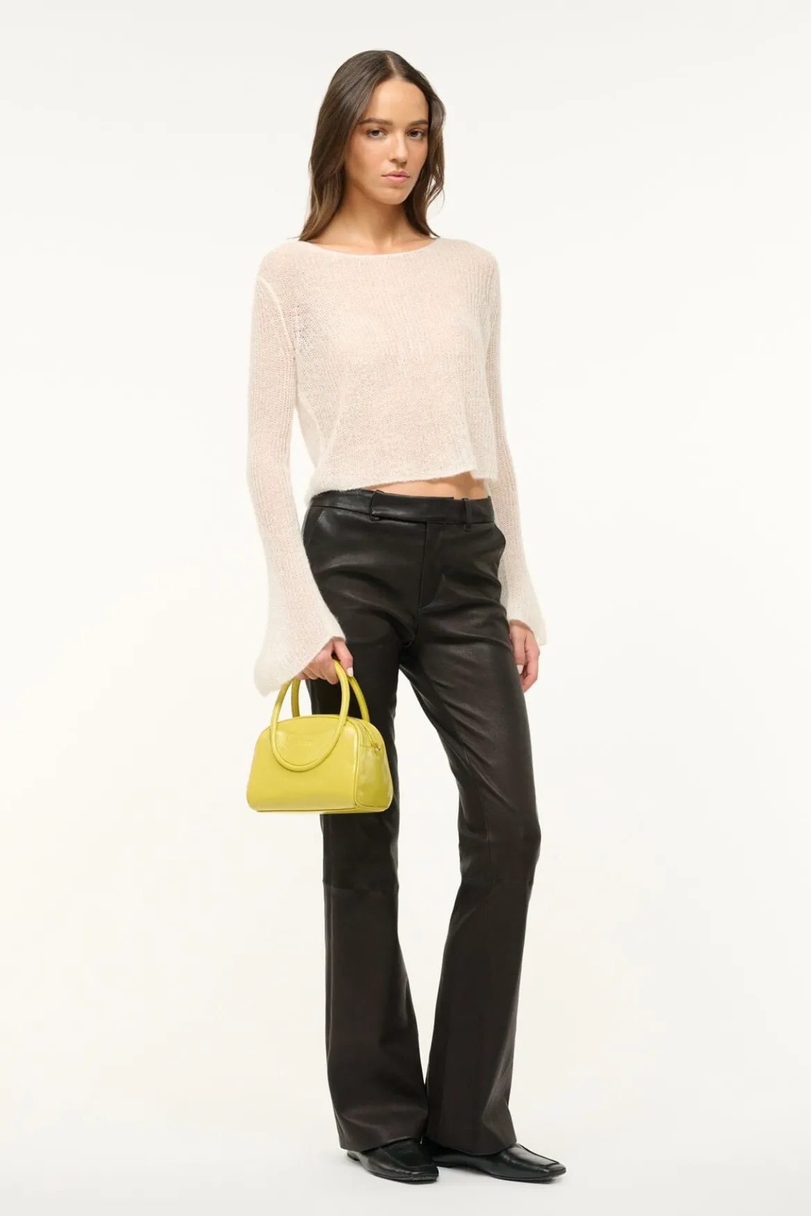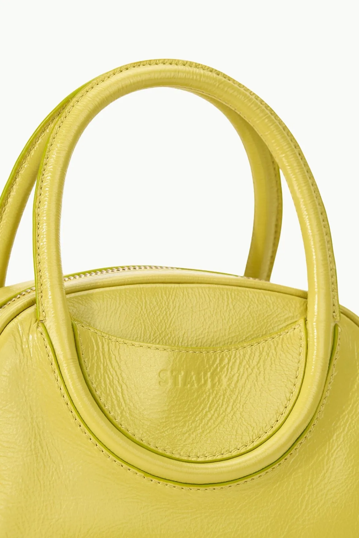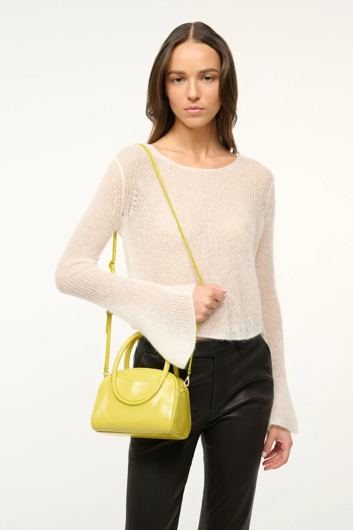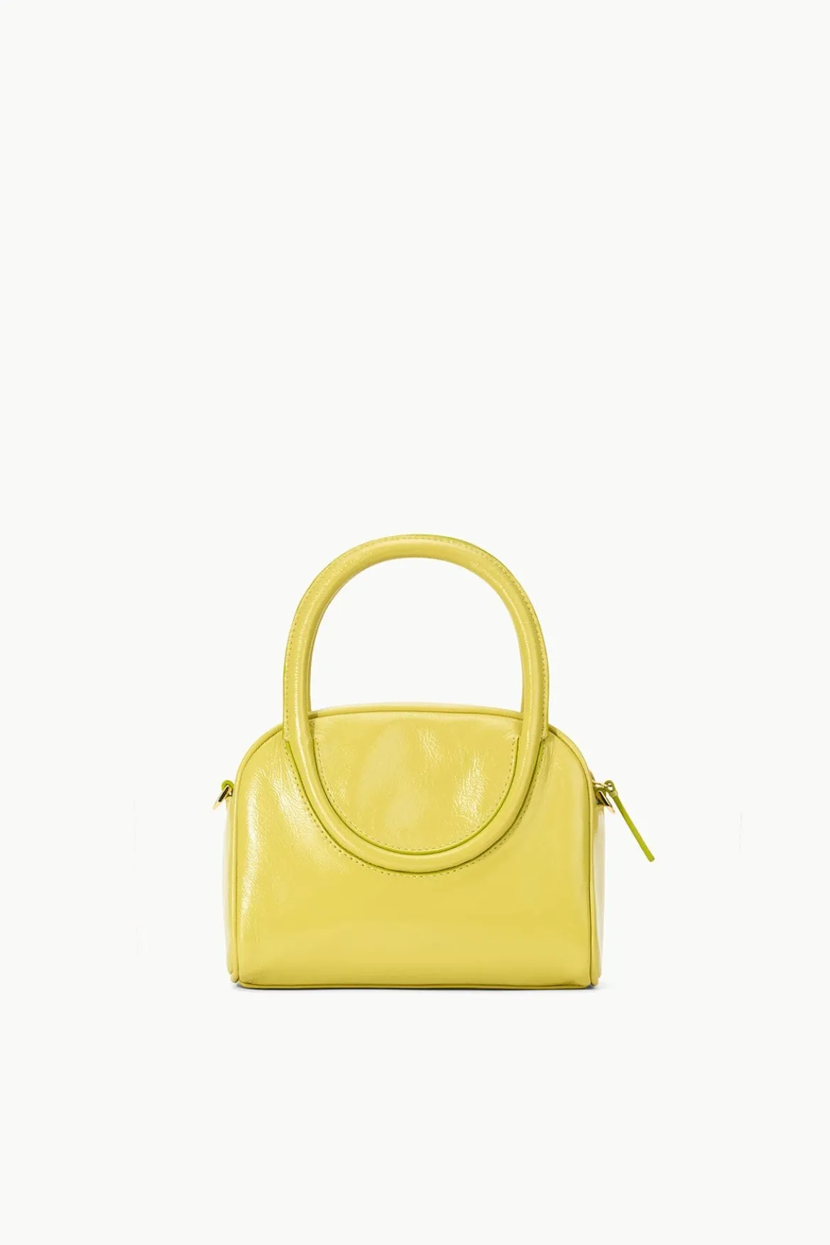 The Maude Mini Bowler Bag is the perfect style to dress up or dress down. This style features rounded handles and a removable, adjustable, crossbody strap. Made out of a slightly shiny crinkle leather.