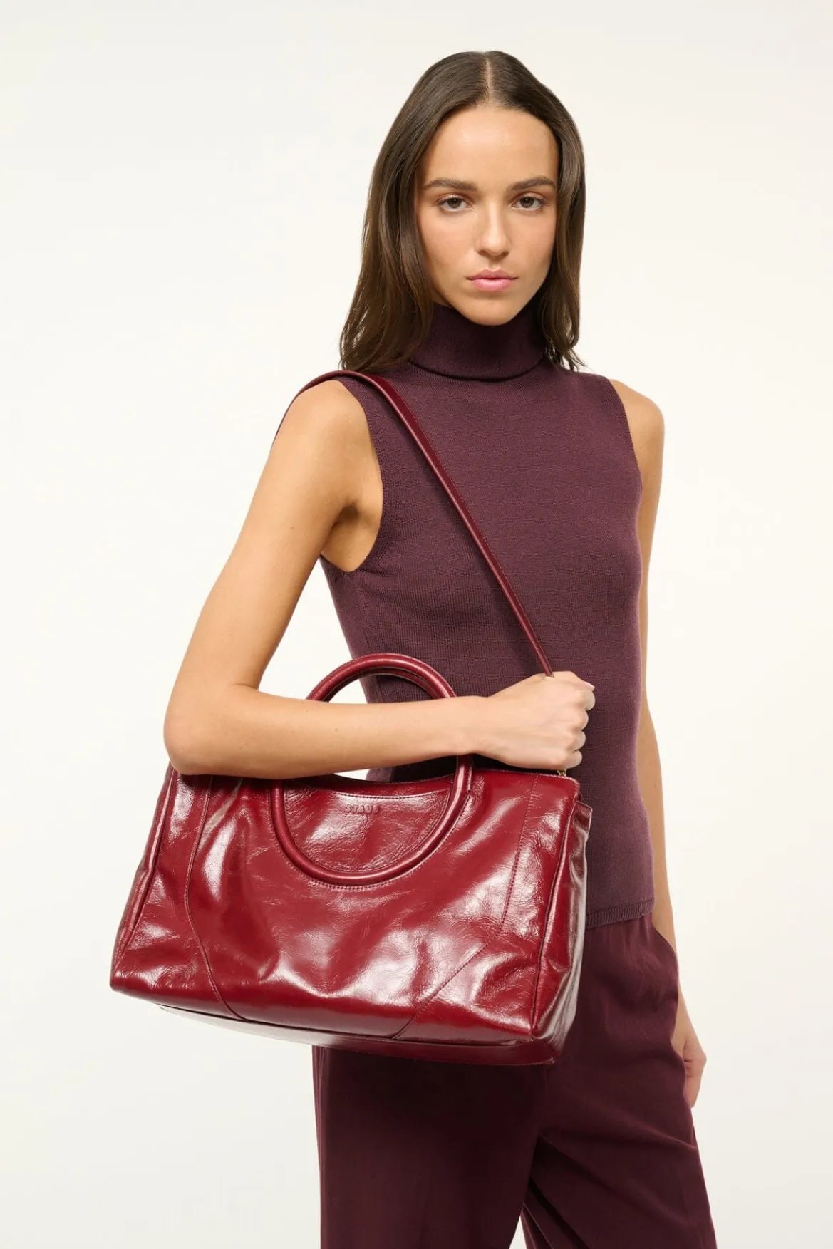 The Maude Satchel is the perfect everyday bag from our Maude family. This style is a soft and slouchy satchel, featuring rounded handles and a removable wide shoulder strap. It has a front pocket that is perfect for a phone and has a zip closure. Made out of a slightly shiny crinkle leather.