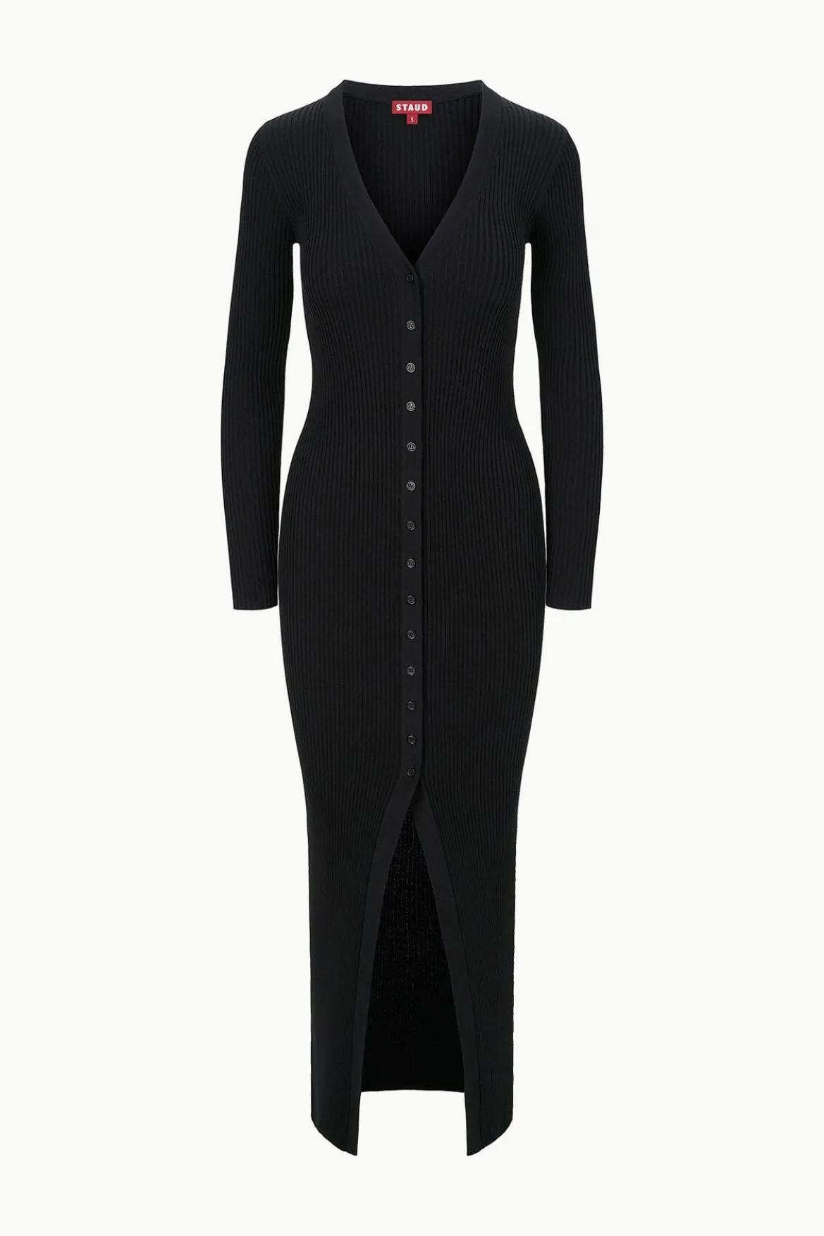 An ankle-length version of our signature rib knit dress, the Maxi Shoko is a stretchy button down style that can be worn open as a layering piece or closed on its own.