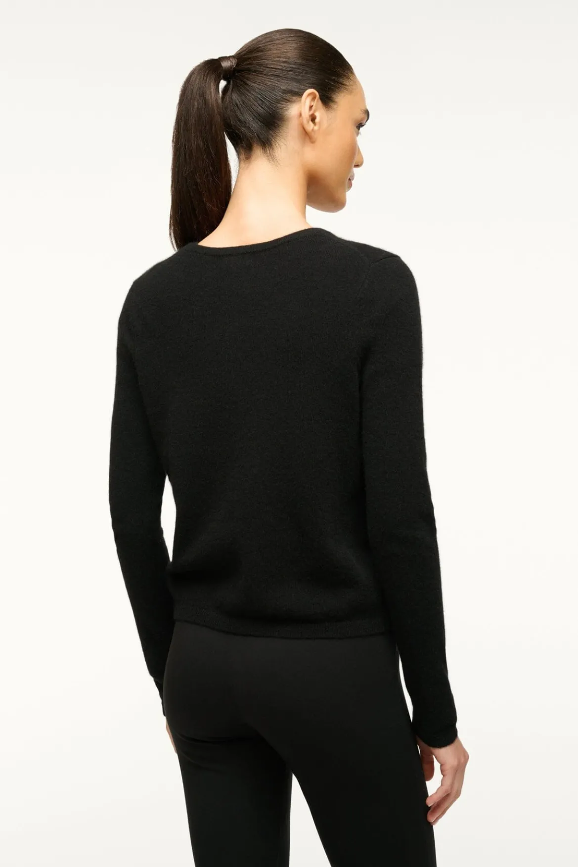 This is a button front cashmere cardigan with a crew neckline. It can be paired with the Easy Cashmere Tee for a coordinating set.