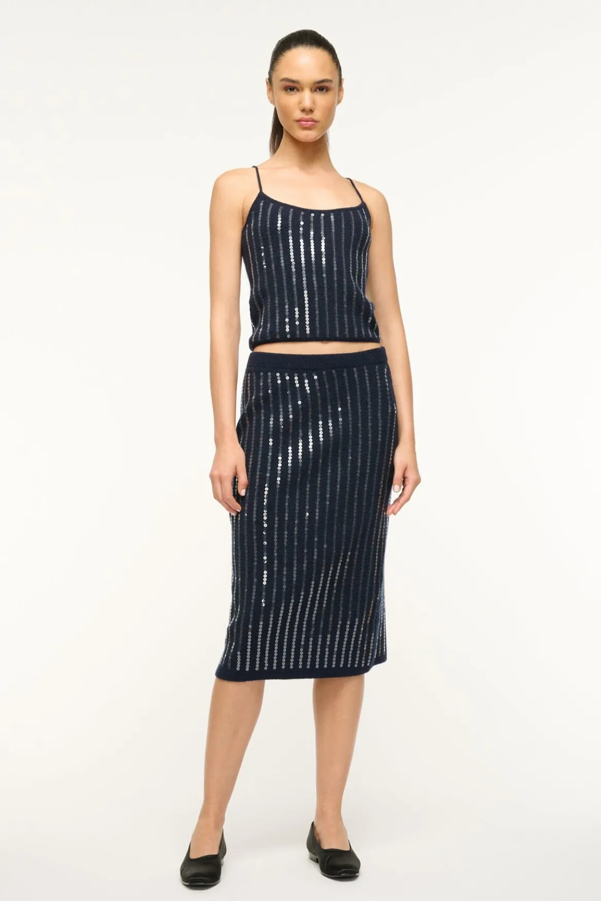 A fuzzy knit skirt made from alpaca wool with sequin embroidery perfect for Holiday occasions. Wear the Mimi Skirt with the matching Emerson Tank for a coordinating look.