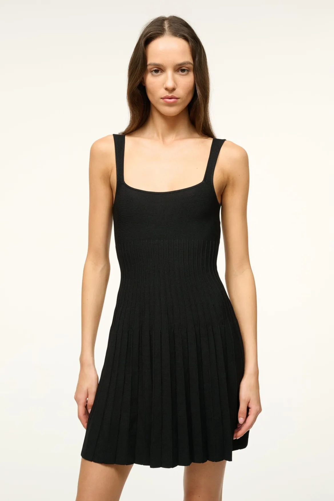 The Mini Ellison Dress is our newest compact knit dress featuring a square neckline, bra-friendly straps, and ottoman stitch detailing at the waist for the perfect flattering fit.