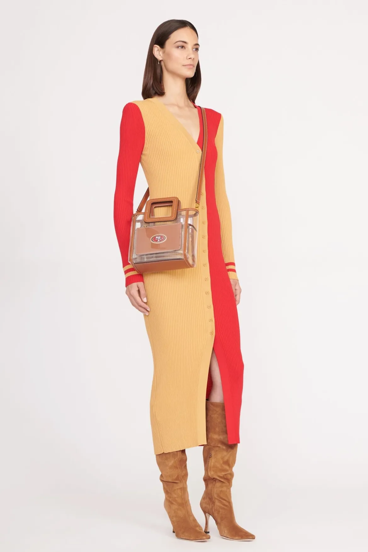 One of our best-selling handbags, the Mini Shirley is now available in a stadium-friendly clear PVC, so you can be gameday ready. The Mini Shirley Stadium Bag is crafted in clear PVC, with tan leather trim, and includes a clear zip pouch, as well as a tan leather coin purse featuring the NFL team logo.