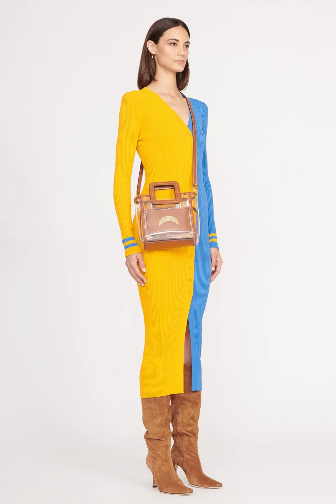 One of our best-selling handbags, the Mini Shirley is now available in a stadium-friendly clear PVC, so you can be gameday ready. The Mini Shirley Stadium Bag is crafted in clear PVC, with tan leather trim, and includes a clear zip pouch, as well as a tan leather coin purse featuring the NFL team logo