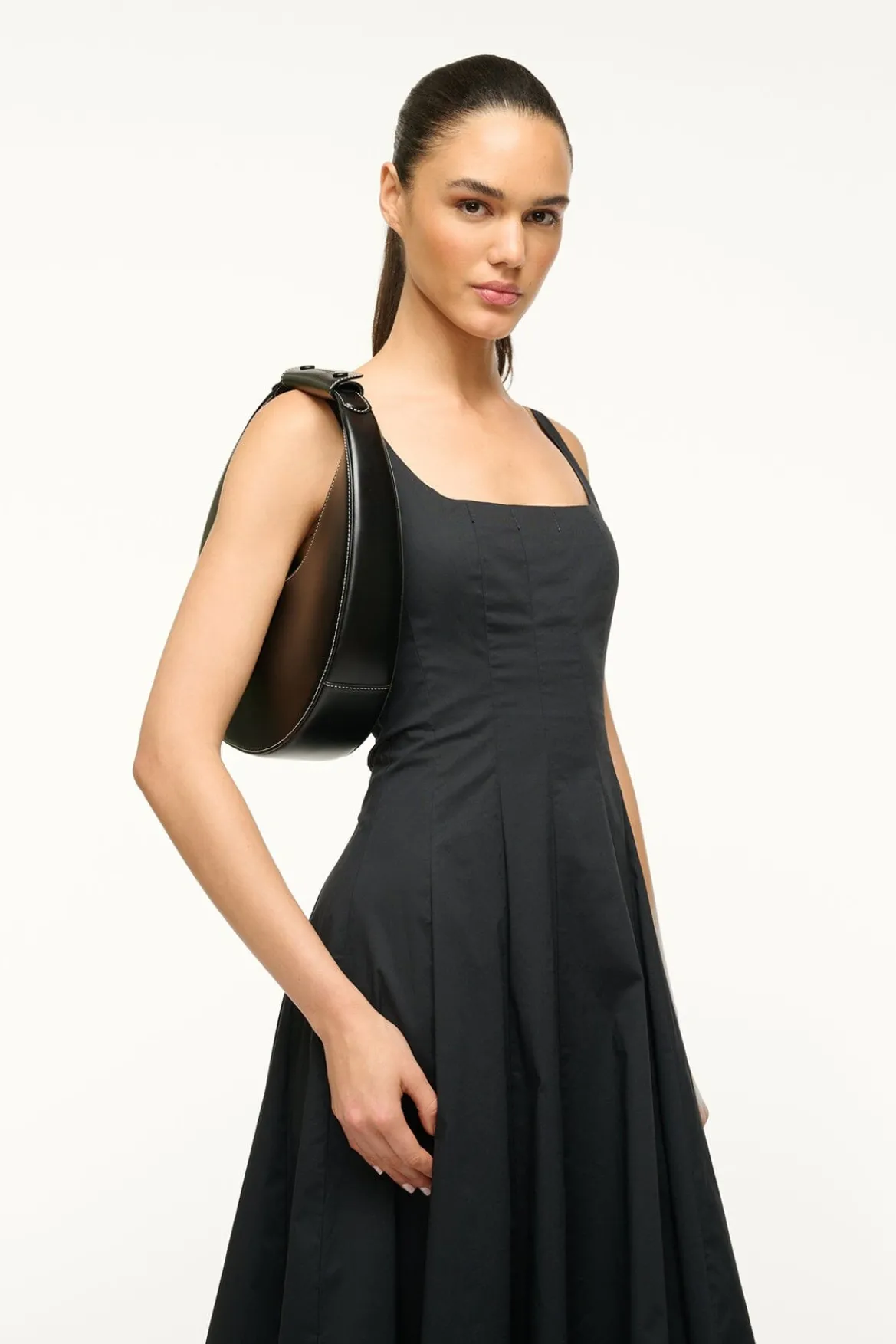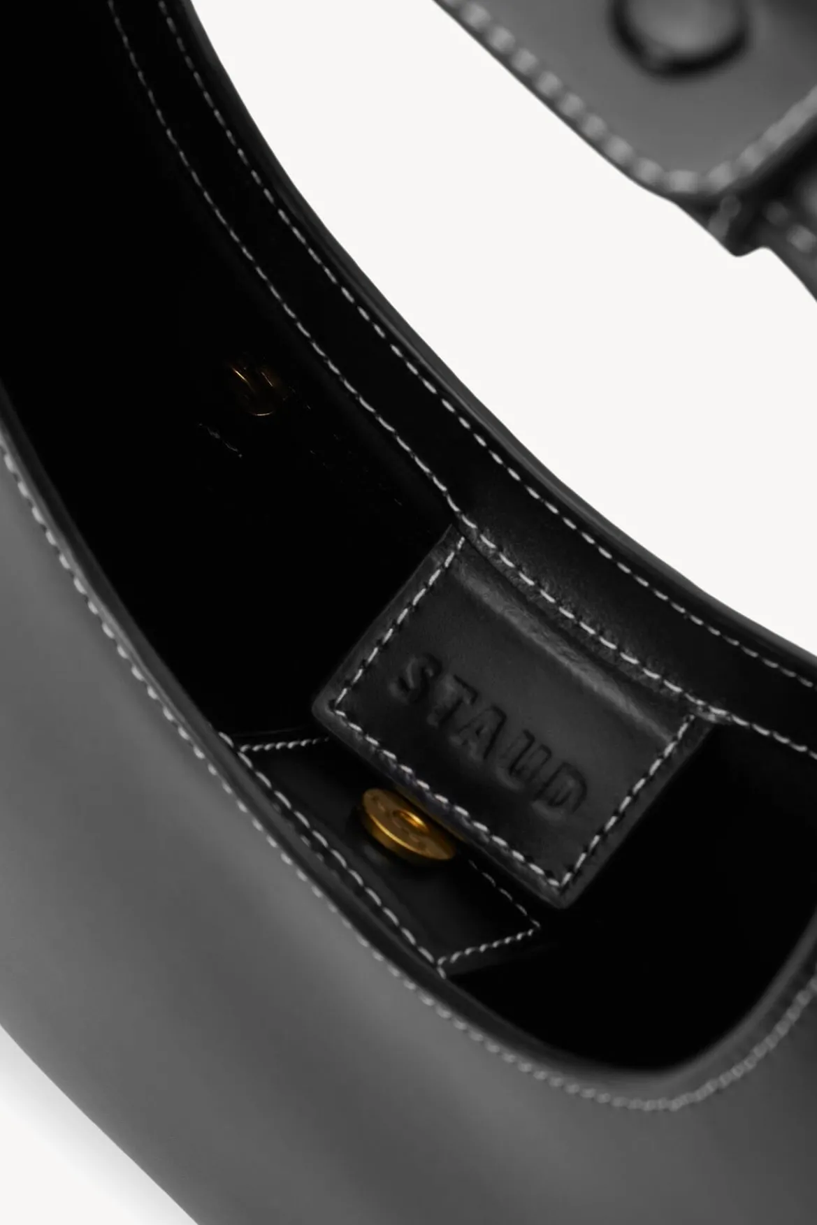 The Moon Bag features a curved handle with a removable STAUD embossed accent.Designed ina crescent moon shape with inner suede lining and a magnetic clasp closure to hold your essentials.