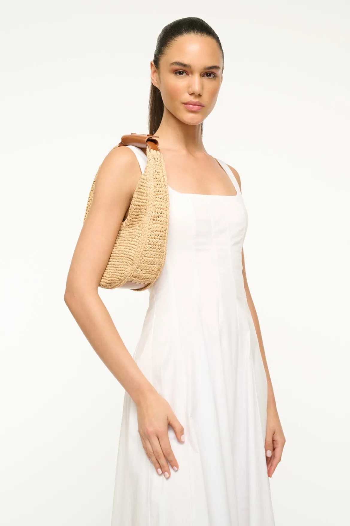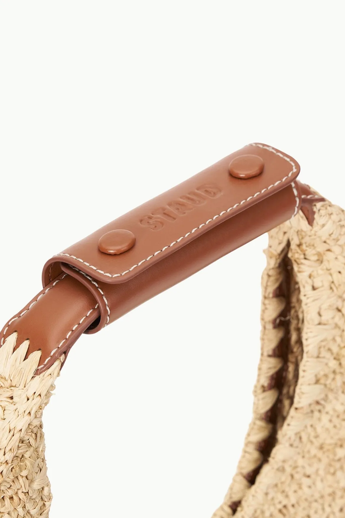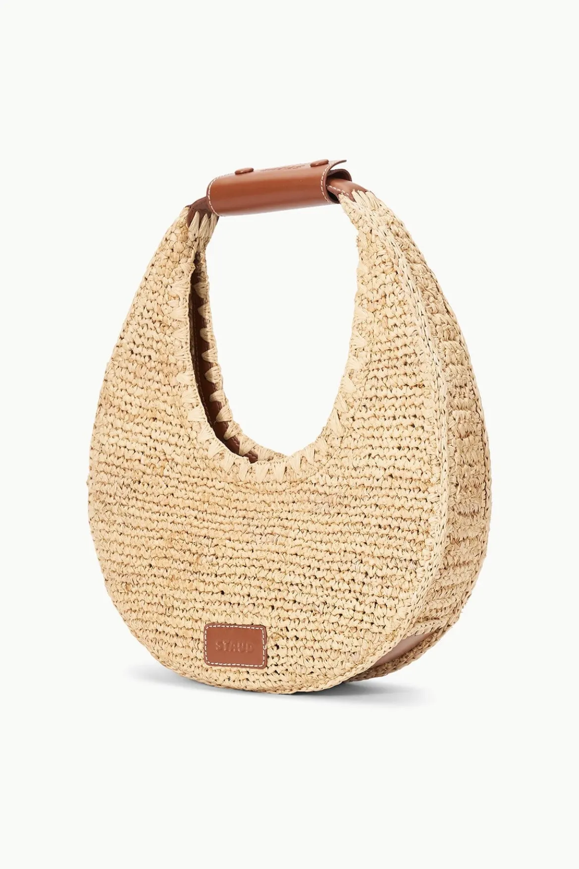 The perfect getaway bag. This Moon update features a natural woven raffia body and magnetic closure. This style is fully unlined.